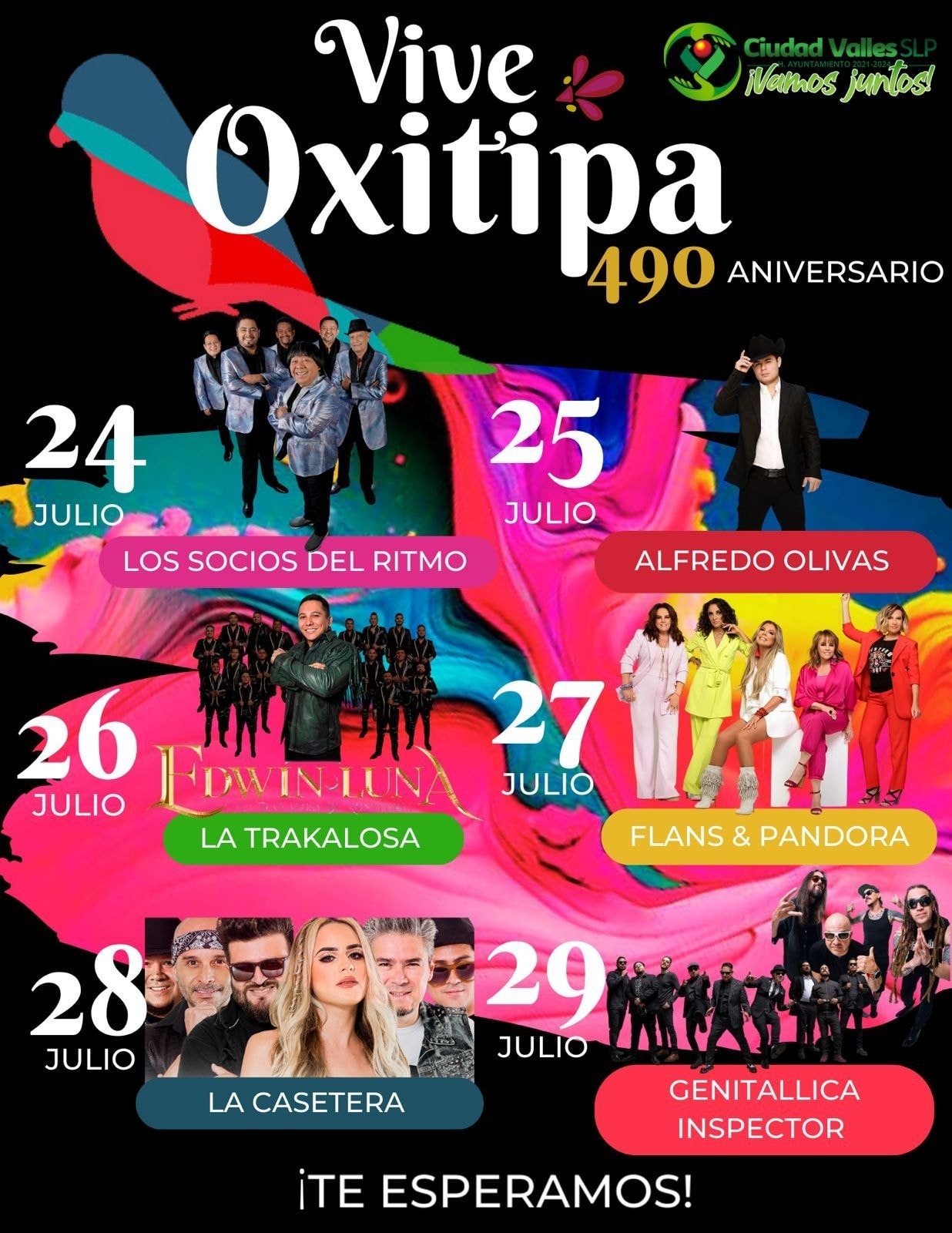 Dio a conocer que, el escenario principal de los terrenos de la feria de Ciudad Valles recibirá a un elenco multiestelar integrado por “Alfredo Olivas”, “La Trakalosa de Monterrey”, “La Casetera”, “Grupo Inspector”, “Genitallica”, “Pandora y Flans”, además de la música tropical de “Los Socios del Ritmo”, con acceso completamente gratuito para la gente.