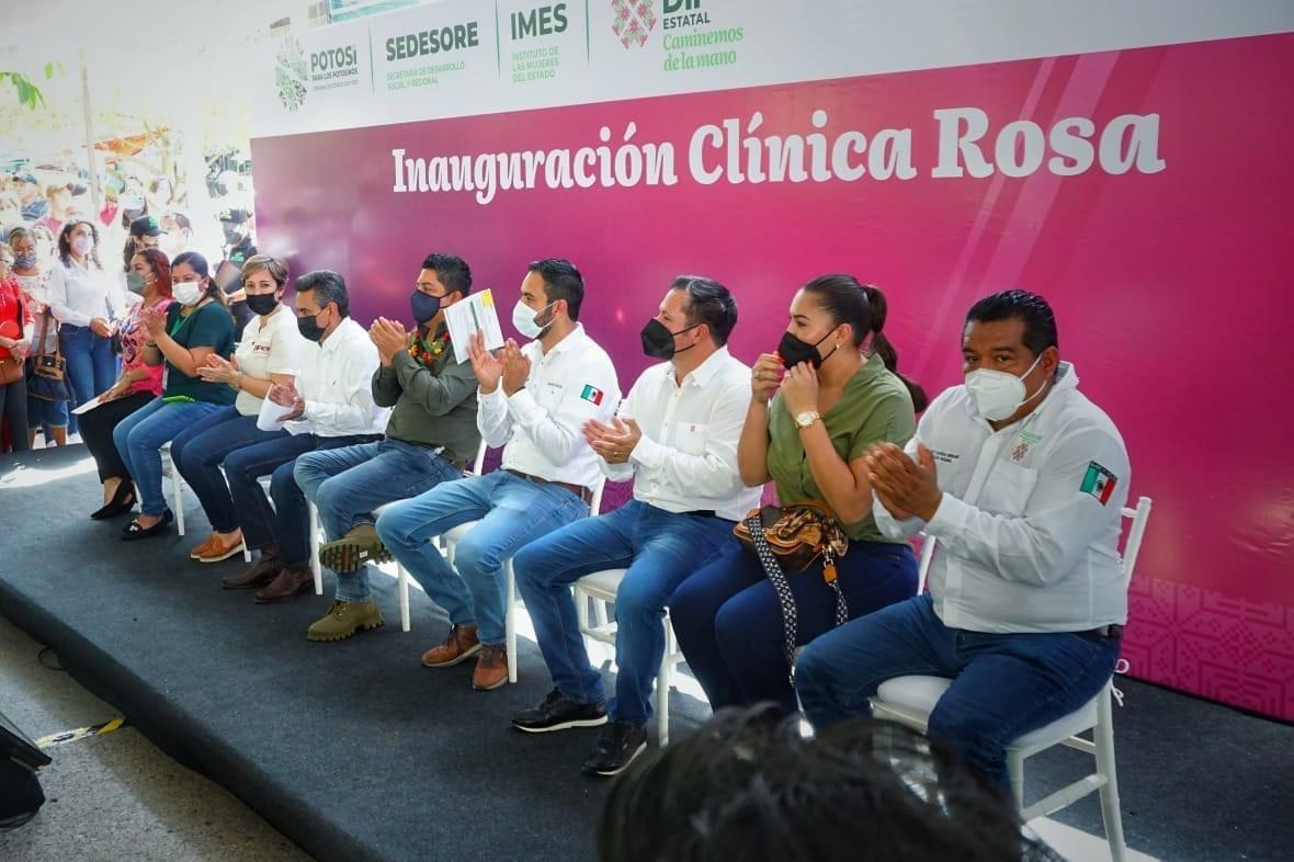 El Gobierno del cambio, que encabeza Ricardo Gallardo Cardona, otorga un apoyo sin precedentes en favor de las mujeres potosinas y sus hijos e hijas, mediante la puesta en marcha de Clínicas Rosa que han sido habilitadas en los municipios de Matehuala, Ciudad Valles, Tamazunchale, Rioverde, además de Soledad de Graciano Sánchez y Villa de Reyes.
