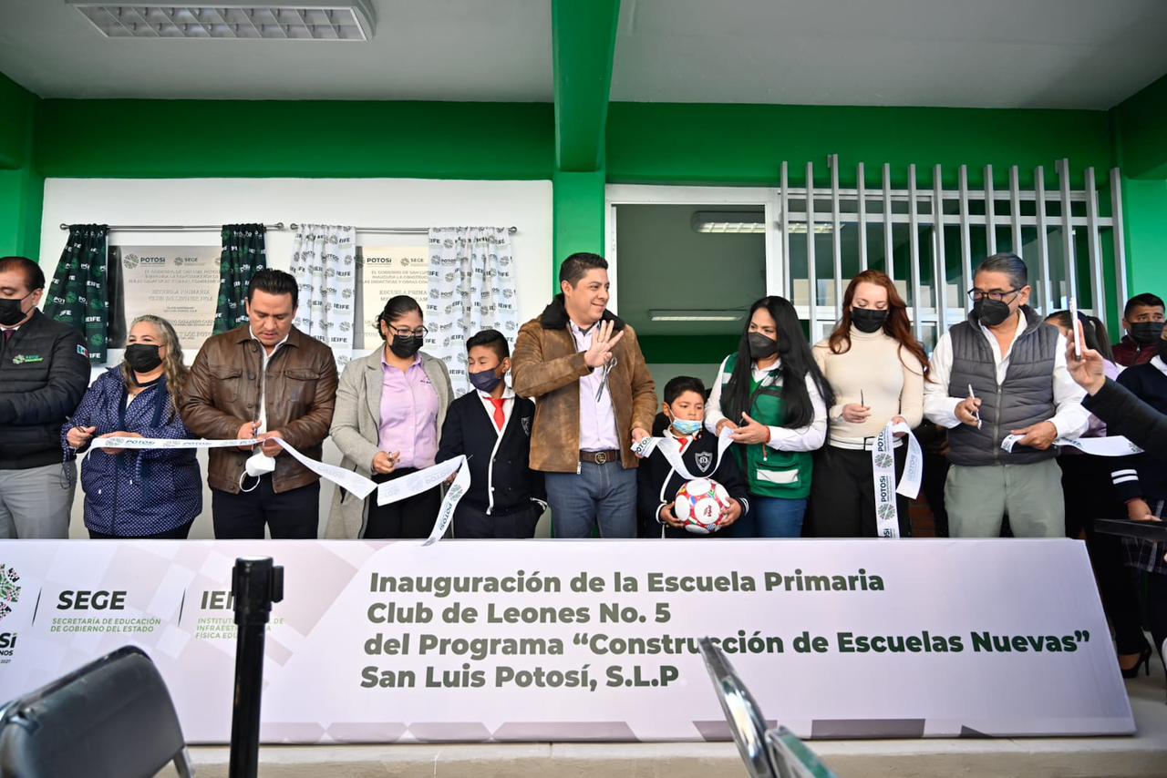 El Gobierno del cambio que encabeza Ricardo Gallardo Cardona avanza en la construcción de las bases para un mejor futuro de las y los niños de San Luis Potosí, con el fortalecimiento de la infraestructura educativa en todos los niveles educativos, lo que se demostró con la inauguración de la Escuela Primaria Club de Leones no. 5 de la colonia Mártires de la Revolución, en el municipio de San Luis Potosí, con una inversión de más de 11 millones 700 mil pesos.