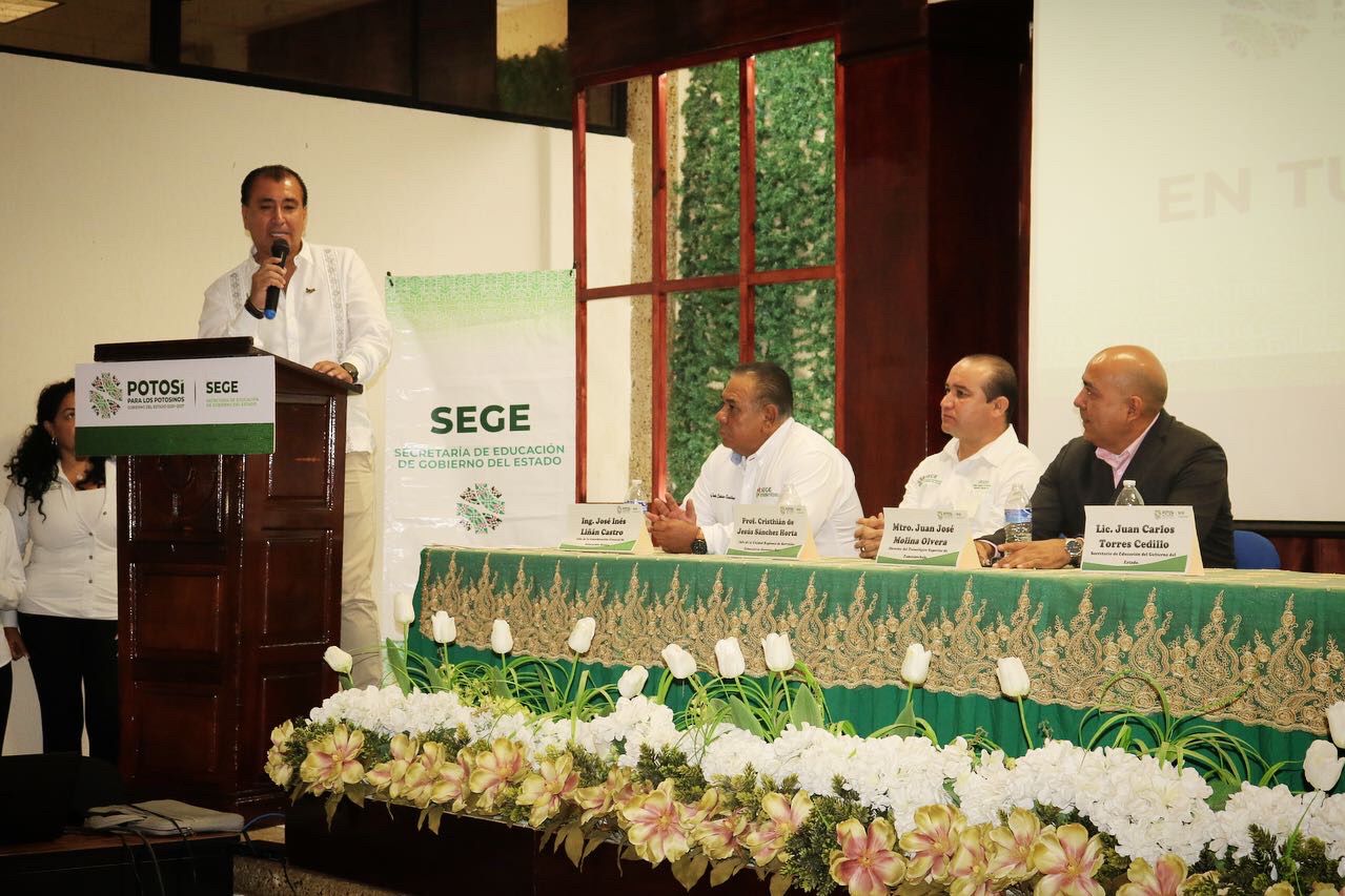 Tamazunchale, San Luis Potosí.- En seguimiento al trabajo del Gobierno del cambio que encabeza Ricardo Gallardo Cardona, para tener una administración eficiente, mejorar la excelencia académica e implementar programas ecológicos desde la niñez, la Secretaría de Educación de Gobierno del Estado (SEGE) presentó el programa “SEGE en tu Escuela” a personal de las Unidades Regionales de Servicios Escolares (Urses), Centros Estatales de Desarrollo Educativo (CEDES), Jefes de Departamento, Jefes de Sector, Supervisores Escolares de Educación Básica.