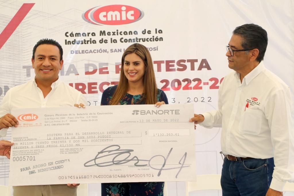 Para reforzar las acciones de asistencia social a la población más desfavorecida de todo San Luis Potosí, el Sistema Estatal para el Desarrollo Integral de la Familia (DIF) recibió un importante donativo de un millón 132 mil 263 pesos de la Cámara Mexicana de Industria de la Construcción (CMIC) Delegación San Luis, en el marco del Día del Constructor.