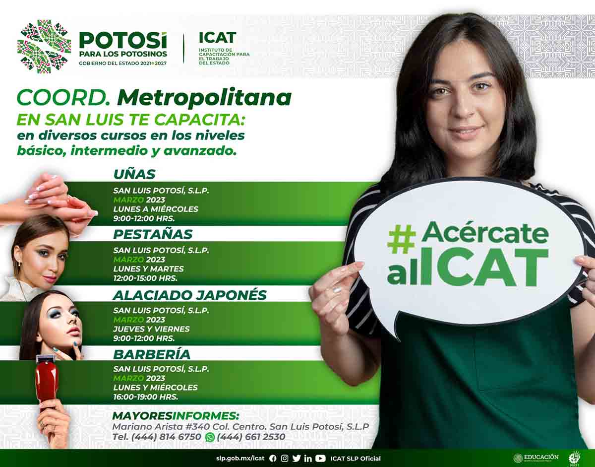 En seguimiento a la política de formación en materia laboral, establecida por el Gobierno del cambio que encabeza Ricardo Gallardo Cardona, el Instituto de Capacitación para el Trabajo (Icat) invita a participar en los cursos de emprendedurismo del mes de marzo, que se llevarán a cabo en las oficinas del Centro de Justicia para las Mujeres (CJM), ubicadas en Mariano Arista #340, colonia Centro.