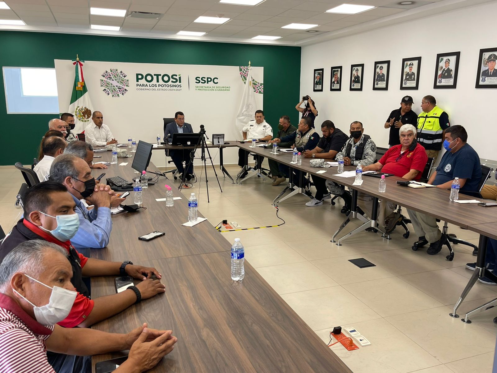 En las instalaciones de la Secretaría de Seguridad y Protección Ciudadana del Estado (SSPCE), se dieron cita los titulares y representantes de los cuerpos de seguridad, rescate y emergencia que participarán en el Plan de Operaciones FENAPO 2022, acordando redoblar esfuerzos para lograr que en el marco de cierre de este magno evento prevalezca una jornada tranquila y sin sobresaltos.