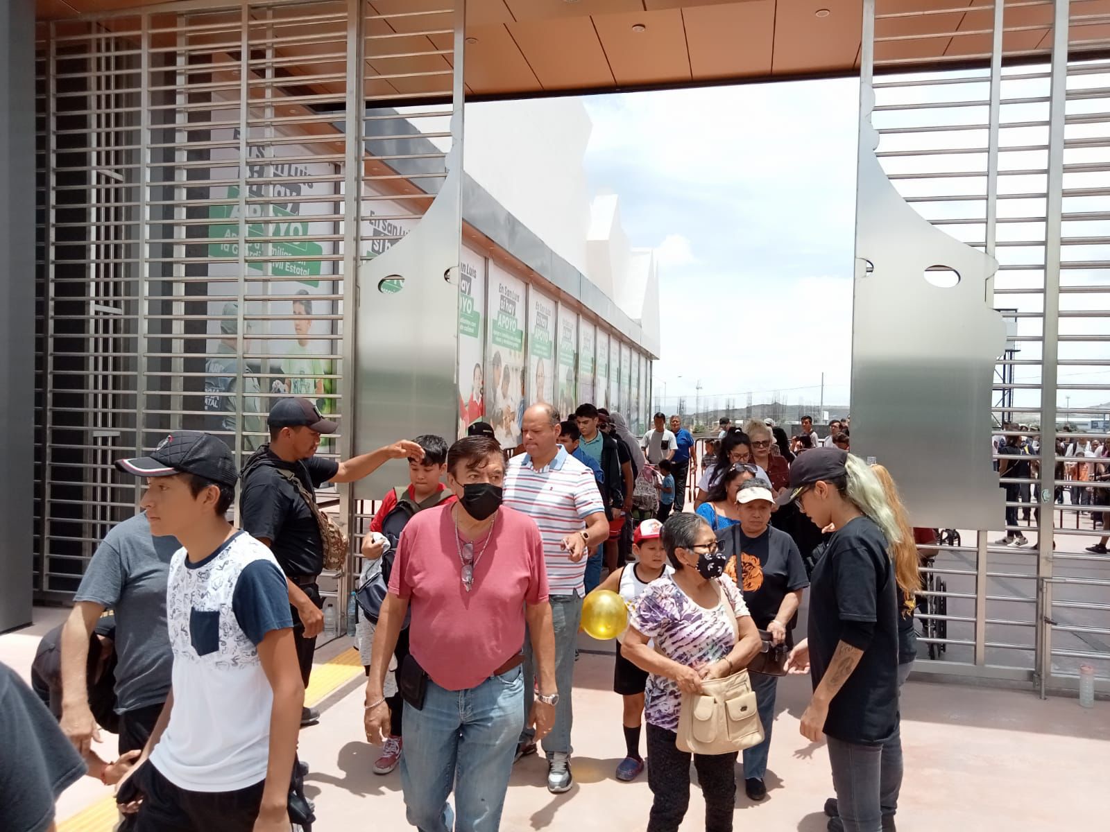 A las dos de la tarde, fueron los primeros en atravesar el acceso principal, en una larga fila de visitantes que, como cada año, esperan ansiosos la llegada del máximo evento ferial de los potosinos.
