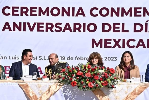 En representación del Gobernador de San Luis Potosí, Ricardo Gallardo Cardona, el secretario general de Gobierno, J. Guadalupe Torres Sánchez, presidió la ceremonia conmemorativa al CX aniversario del Día del Ejército Mexicano, donde a nombre del Gobierno del cambio, expresó el reconocimiento a esta institución que, desde su creación, se mantiene leal al Estado de Derecho y a las instituciones de la República.