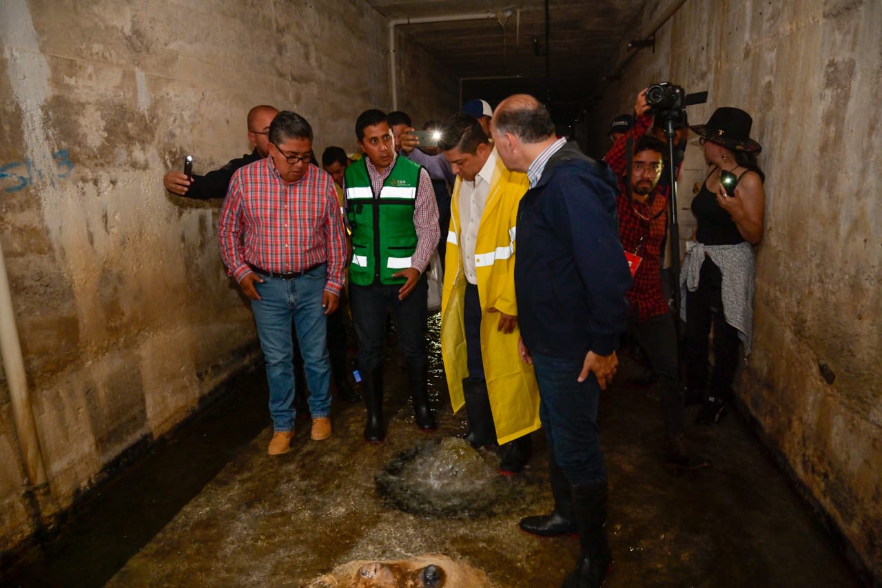Al recorrido acudieron funcionarios estatales de la Comisión Estatal del Agua (CEA), y del Interapas, así como directivos de la empresa concesionaria Aquos.