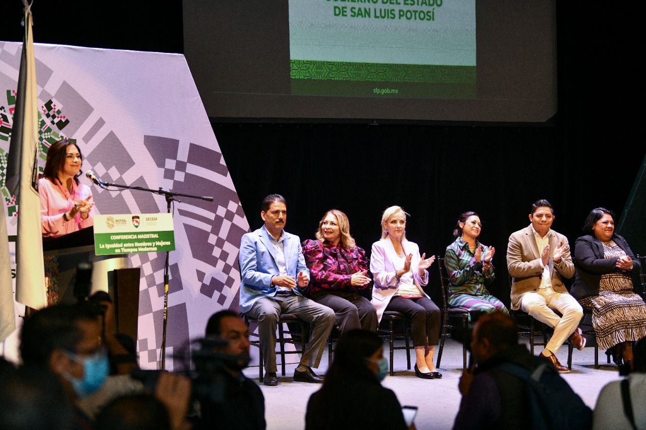 San Luis Potosí y el Gobernador de la entidad Ricardo Gallardo Cardona, promueven la igualdad, además de atender la seguridad y la protección a las mujeres, dos temas muy importantes en la actualidad, destacó la consejera ciudadana ante el Consejo Nacional de Seguridad Pública (CNSP), Jacqueline García Vázquez, en el marco de la conferencia “La igualdad entre hombres y mujeres en tiempos modernos”, que se llevó a cabo en San Luis Potosí.