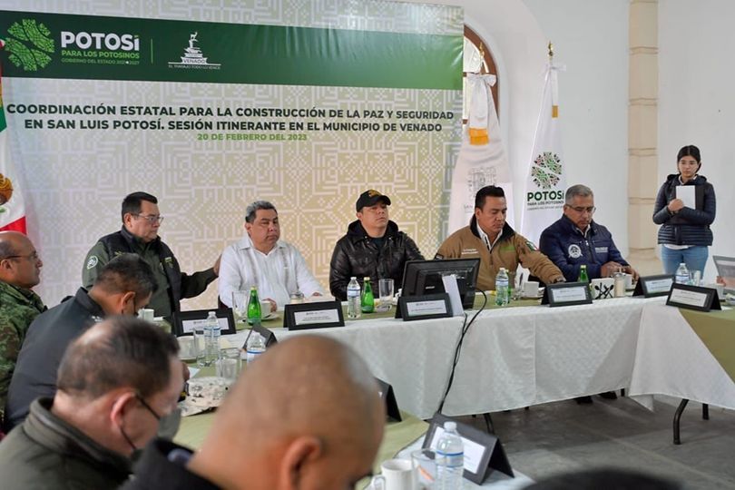 Venado, San Luis Potosí.- Con un mensaje de apoyo, acompañamiento y colaboración estratégica en continuidad de las acciones para fortalecer los resultados en seguridad pública en la región Altiplano, el Gobernador de San Luis Potosí, Ricardo Gallardo Cardona, visitó el municipio de Venado, este lunes, para dirigir y restablecer los esfuerzos de las corporaciones de seguridad y procuración de justicia en el marco de la Mesa de Coordinación para la Construcción de la Paz.