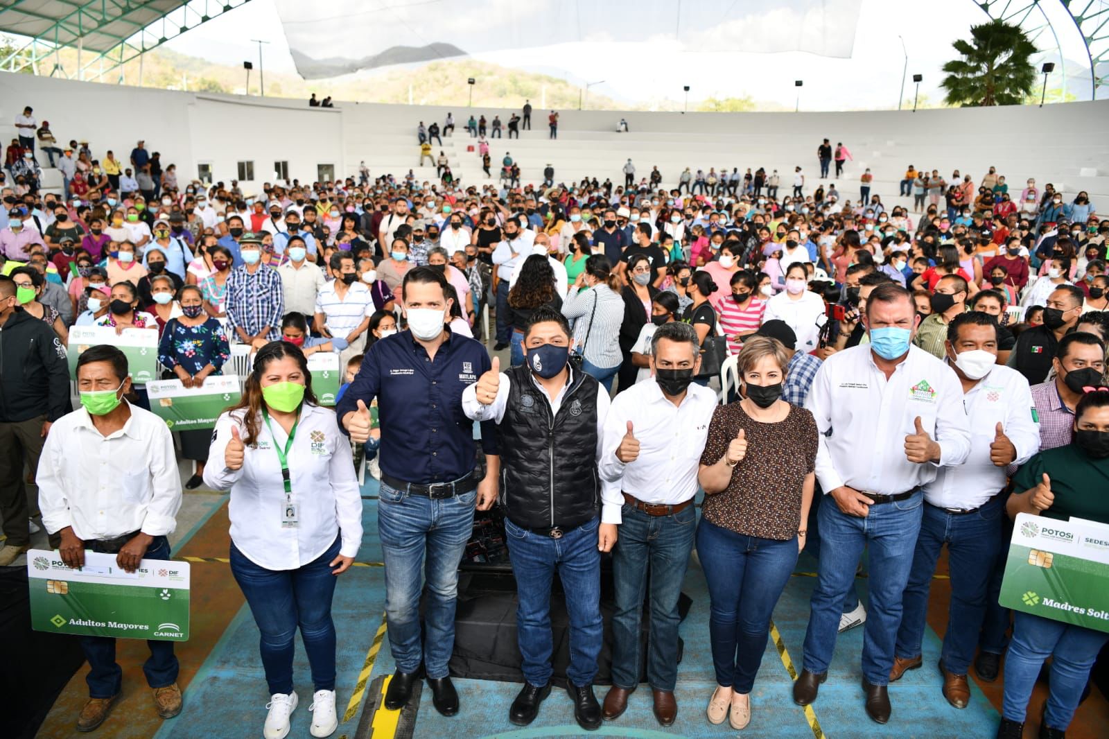 Con un “sí se pudo, ¡sí se pudo!» al unísono, cientos de madres solteras y adultos mayores de Tamazunchale y Matlapa celebraron la llegada de las ayudas económicas que el Gobernador del Estado Ricardo Gallardo Cardona, acudió a entregarles personalmente, con las cuales reforzarán su economía y podrán enfrentar imprevistos. “Nos dijeron que no se podría apoyar a las y a los más necesitados de San Luis y aquí estamos repartiendo la bonanza a las familias de la Huasteca sur”, dijo el jefe del Ejecutivo.