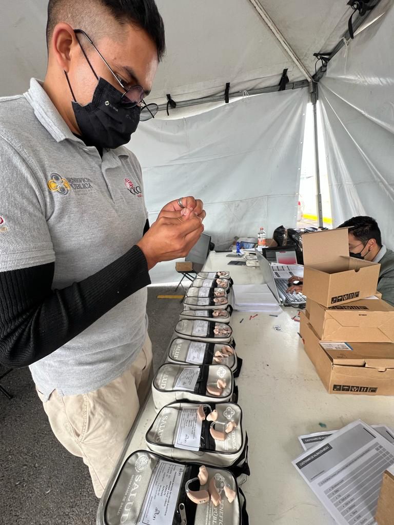 Resultado de la aplicación de una política social y de bienestar para las y los potosinos, emprendida por el Gobernador de San Luis Potosí, Ricardo Gallardo Cardona, el Patrimonio de la Beneficencia Pública en el Estado, en coordinación con los Servicios de Salud, realizaron dos días de Jornadas Auditivas con las que beneficiaron a 225 personas, que ahora pueden escuchar gracias a auxiliares auditivos.