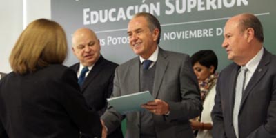 El Gobernador del Estado, Juan Manuel Carreras López, y el Subsecretario de Educación Superior de la Secretaría de Educación Pública (SEP), Rodolfo Tuirán Gutiérrez, entregaron reconocimientos a 18 instituciones de educación superior del país, quienes conformaron el grupo técnico para impulsar la formación dual, apoyado por la SEP, la Asociación Nacional de Universidades e Instituciones de Educación Superior (ANUIES) y la Fundación Educación Superior-Empresa (FESE).