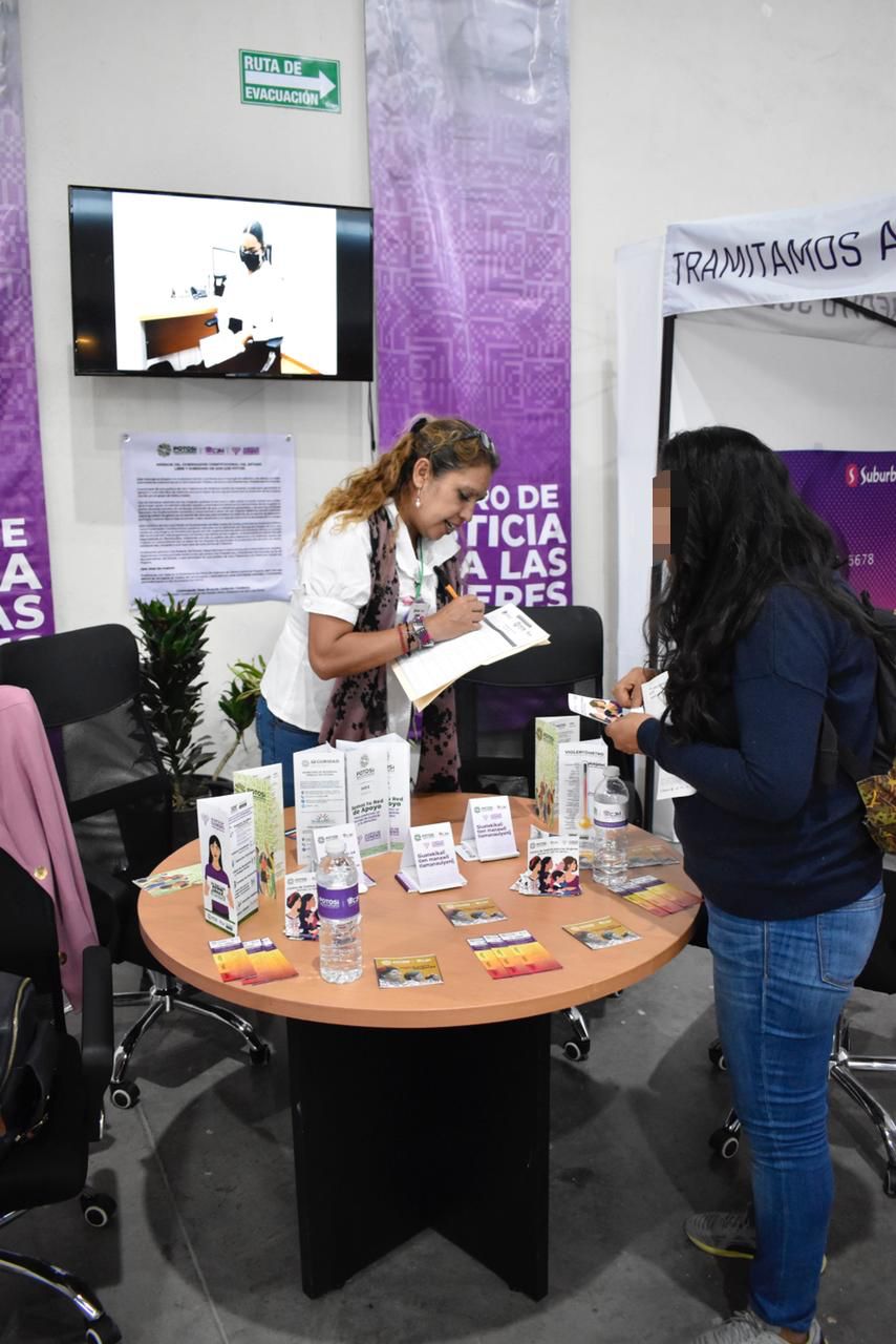 • El Centro de Justicia para las Mujeres, habilitó un módulo en el pabellón Industrial para acercar a las potosinas, que así lo requieran, a los servicios gratuitos que ofrece