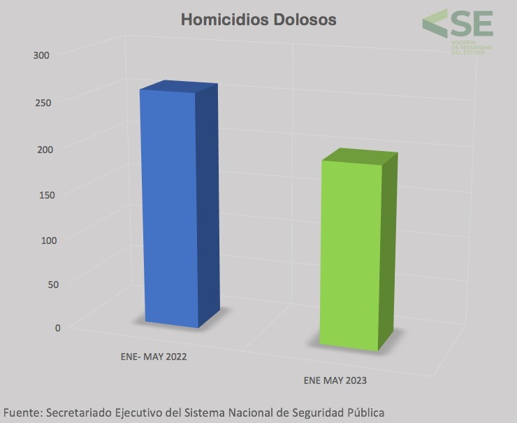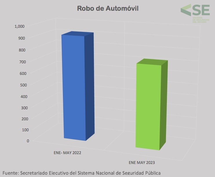 Detalló que de acuerdo con el informe del Secretariado Ejecutivo del Sistema Nacional de Seguridad Pública (SESNSP), de abril a mayo del 2023, se redujeron incidencias en: robo a casa/habitación, 21 por ciento; robo a transportista, 34 por ciento; robo a transeúnte, 31 por ciento y robo de autopartes, 97 por ciento, cifras que reflejan el esfuerzo coordinado, pero que también comprometen al Gobierno del cambio a continuar con la estrategia a favor de la paz y la seguridad.