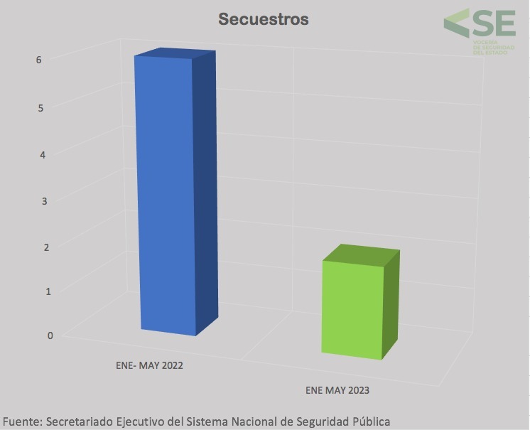 • Durante los primeros cinco meses del año, el secuestro, homicidio doloso, acoso sexual y robo de automóvil descendieron entre el 20 y 67 por ciento
