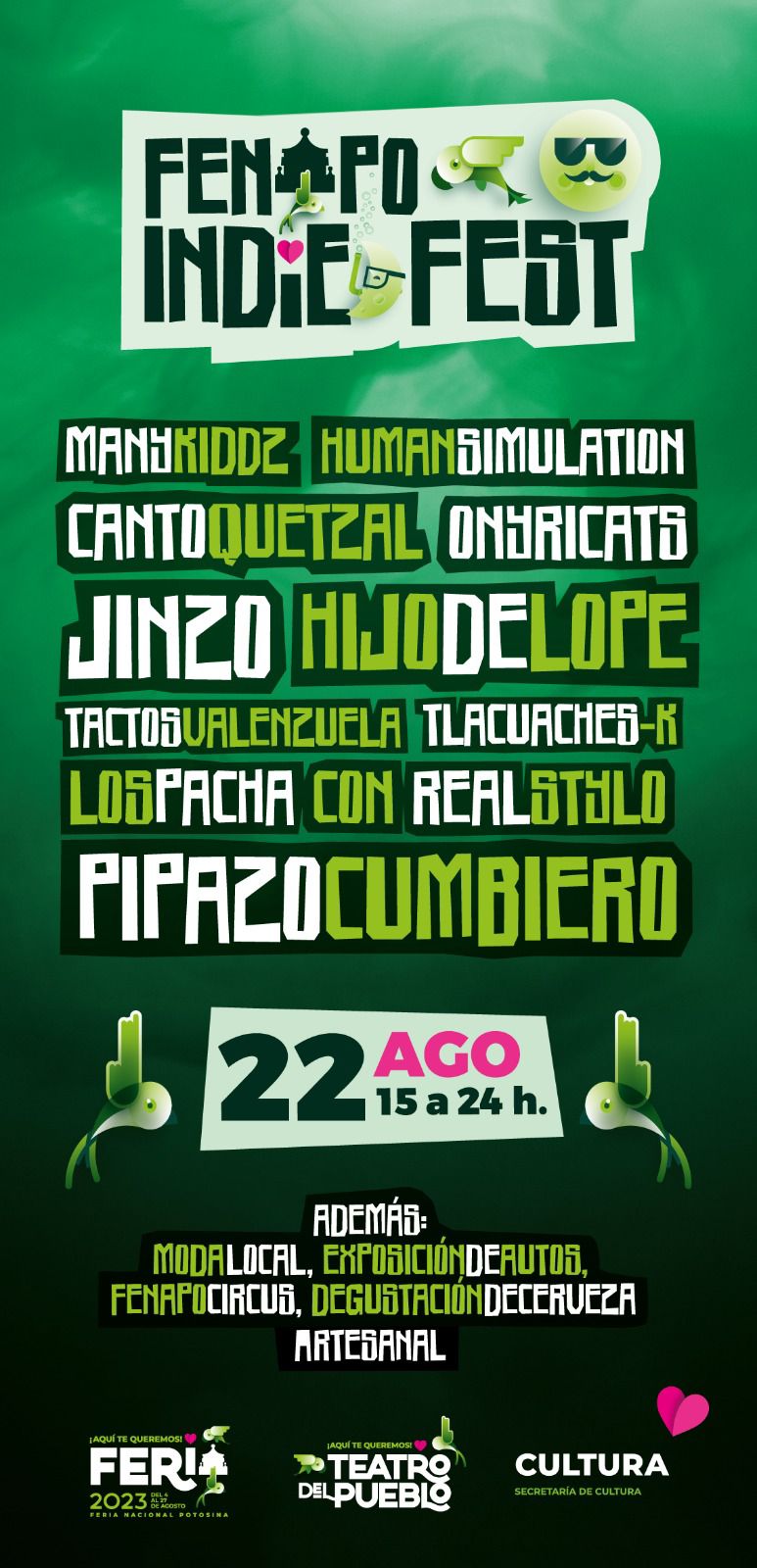 Tal como lo instruyó el Gobernador, Ricardo Gallardo Cardona, en el sentido de crear una fiesta para todas y todos, el Indie Fest se presentará con acceso gratuito para todas las edades.