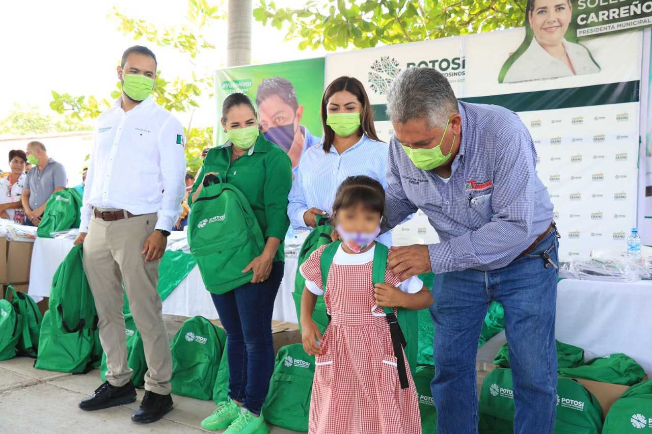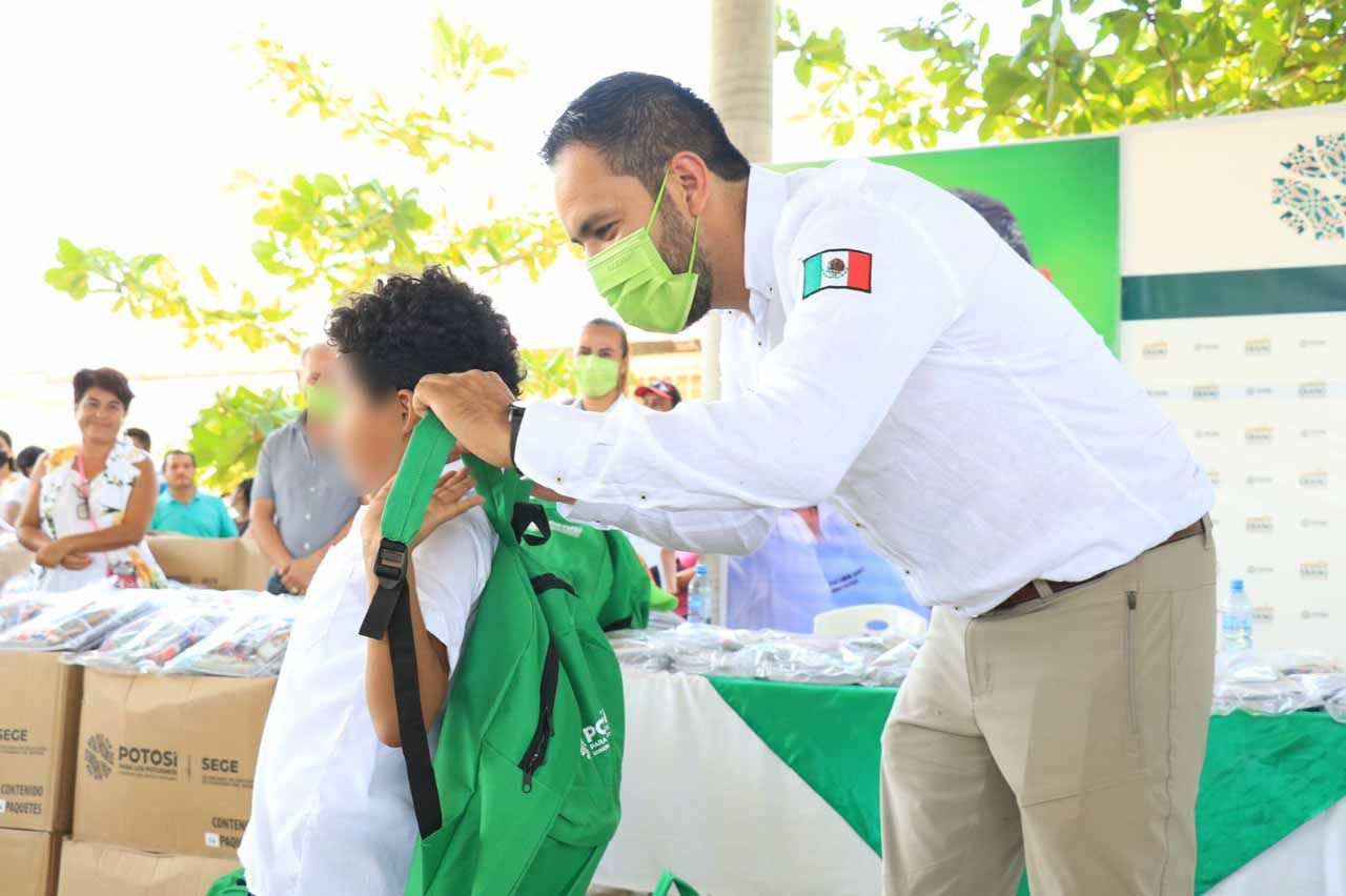 En representación del Gobernador de San Luis Potosí, Ricardo Gallardo Cardona, el titular de la Secretaría de Desarrollo Social y Regional (Sedesore), Juan Ignacio Segura Morquecho, fortalece el programa de apoyos escolares en la Huasteca potosina al repartir paquetes de útiles, mochilas y zapatos a más de mil 400 familias de Tamuín y Ébano.