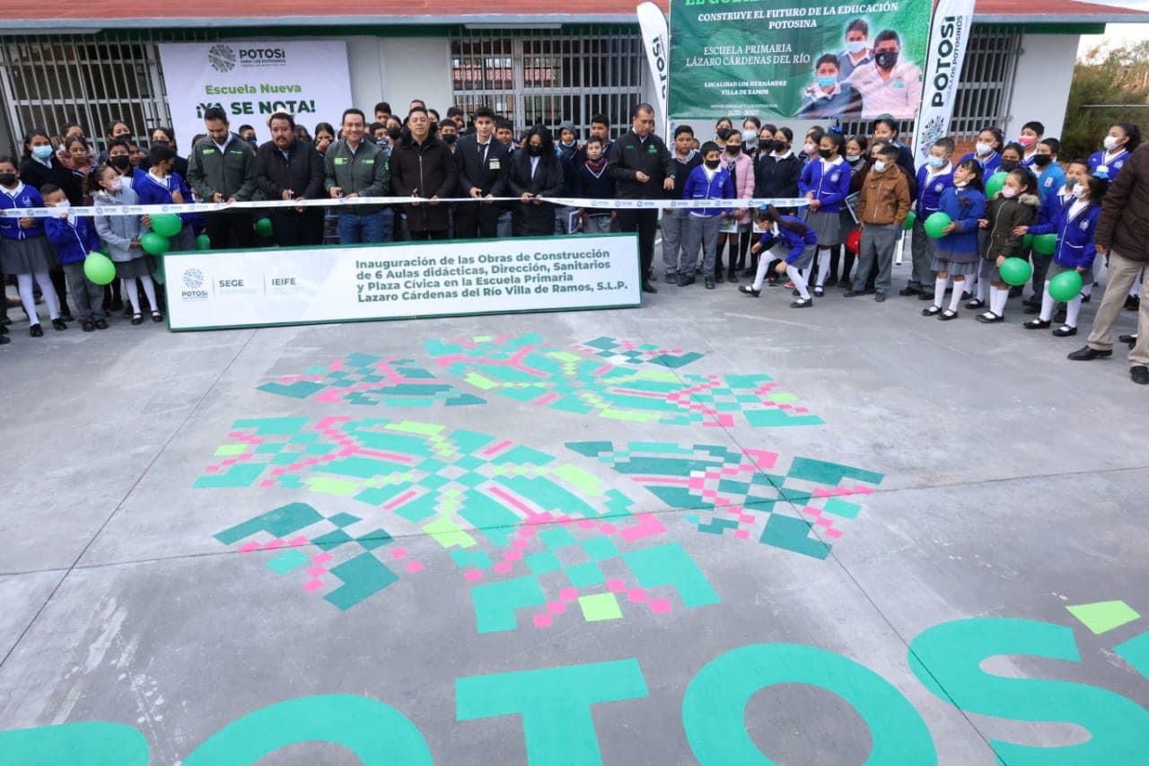 Villa de Ramos, San Luis Potosí.- El Gobierno del cambio, está decidido en dar a las y los alumnos, así como a los docentes de todo el Estado, espacios dignos para que en educación nadie se quede atrás, afirmó el Gobernador de San Luis potosí, Ricardo Gallardo Cardona, al inaugurar la construcción de seis nuevas aulas, dirección, sanitarios y plaza cívica de la escuela primaria “Lázaro Cárdenas del Río” en la comunidad de Los Hernández, con una inversión de 11.3 millones de pesos.