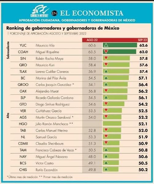 La encuesta de Consulta Mitofsky, fue realizada a 67 mil 402 mexicanos mayores de 18 años con dispositivos móviles inteligentes con acceso a Internet, en ella, se destaca que respecto de agosto pasado, 17 mandatarios estatales incrementaron su porcentaje de aprobación ciudadana promedio mensual; 13 la disminuyeron y dos, Hidalgo y Durango, recién estrenados en el poder, septiembre fue su primer mes de evaluación.