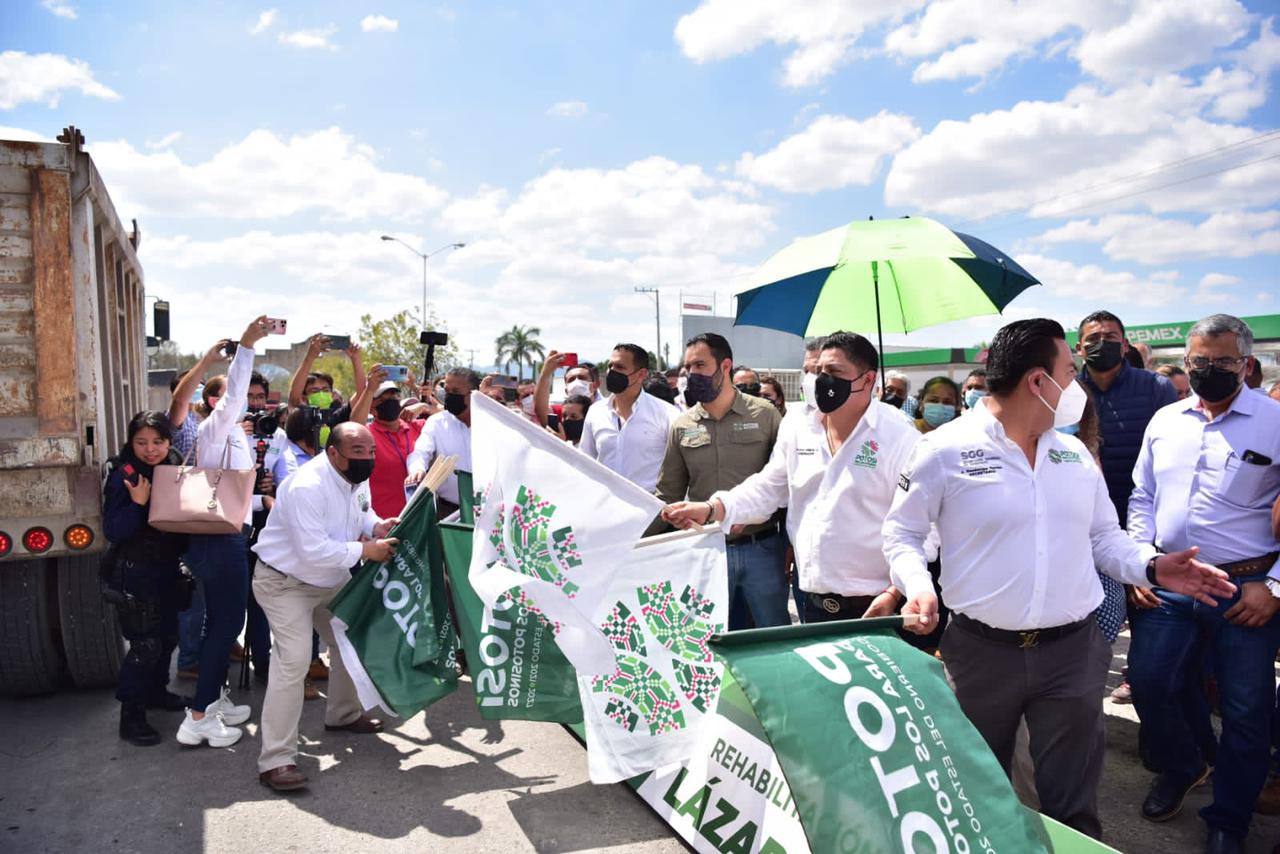 Este jueves, el Gobernador del Estado Ricardo Gallardo Cardona realizó una gira de trabajo en la zona Huasteca, en la que dio banderazo de arranque a la rehabilitación integral del bulevar LĆ”zaro CĆ”rdenas -uno de los principales accesos a Ciudad Valles- en su tramo de Glorieta de Pedro Antonio de los Santos a Puente Valles, que representa una inversión de 50 millones de pesos en la atención de mĆ”s de 1.3 kilómetros de esta vĆa.