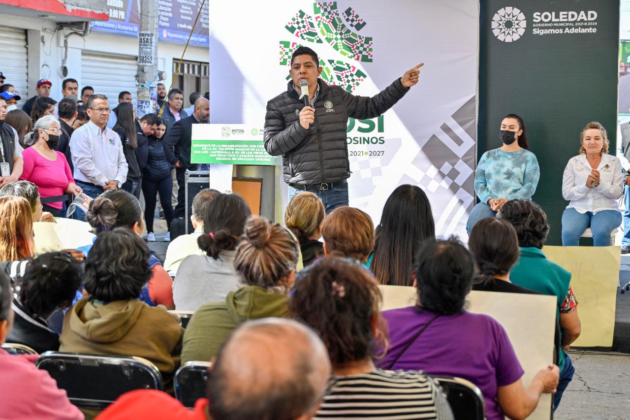 El Gobierno de San Luis Potosí, encabezado por Ricardo Gallardo Cardona, está terminando con la desigualdad social, porque además de atender añejas peticiones que quedaron olvidadas por la “herencia maldita”, mantiene un acercamiento con la gente como nunca se había visto, aseguraron habitantes de Soledad de Graciano Sánchez, durante el arranque de los trabajos de rehabilitación con concreto hidráulico de la avenida Valentín Amador.