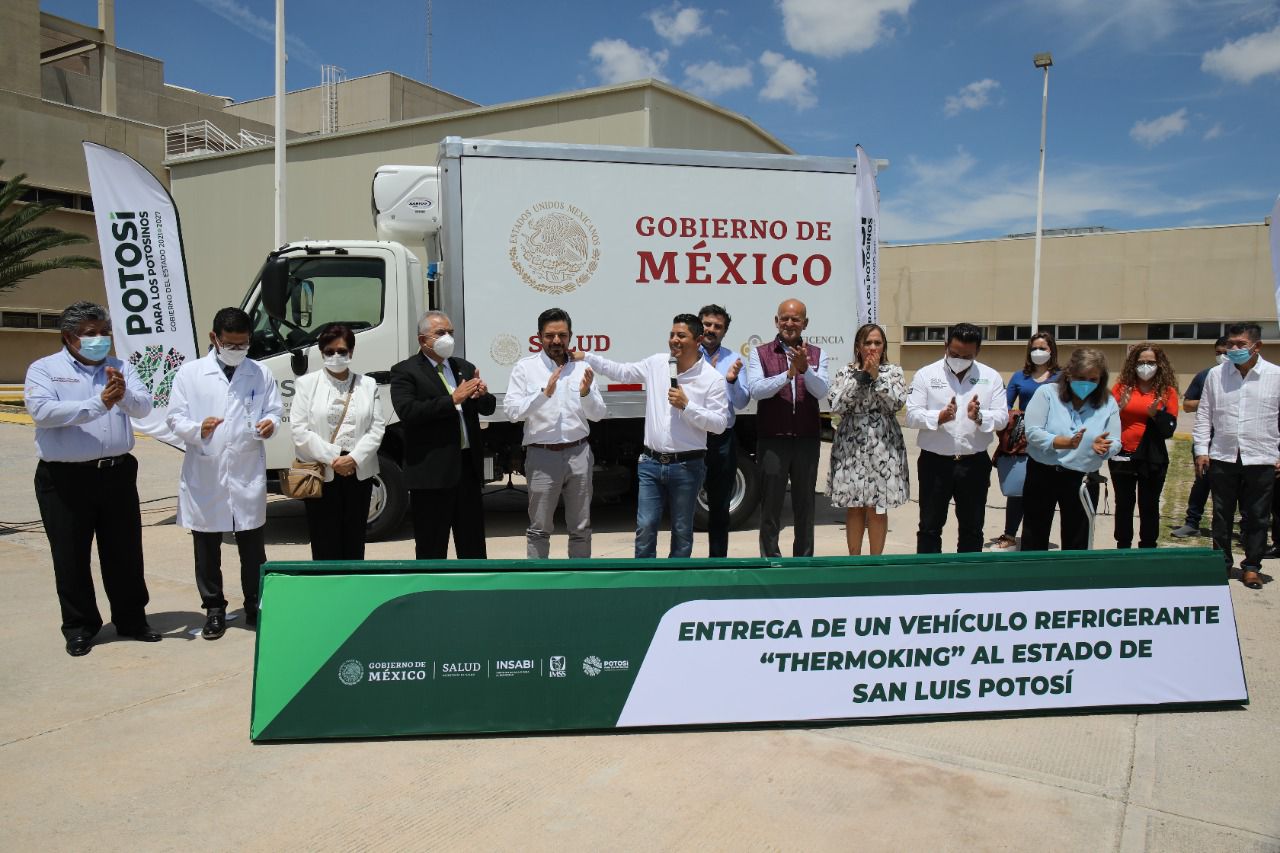 Durante su visita a San Luis Potosí, el director general del Instituto de Salud para el Bienestar (Insabi), Juan Antonio Ferrer Aguilar y el director general del Instituto Mexicano del Seguro Social (IMSS), Zoé Robledo Aburto, acompañaron al Gobernador del Estado, Ricardo Gallardo Cardona a un recorrido por el Hospital General de Soledad de Graciano Sánchez, donde hicieron la entrega de un vehículo refrigerante “Thermoking”, el cual permitirá transportar medicamentos o vacunas que requieren cadena en frío.