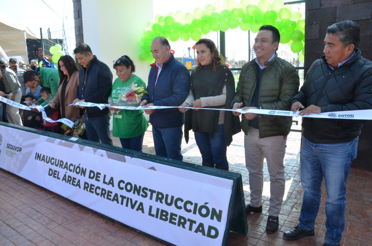 Mediante la consolidación de proyectos en las diferentes colonias de la capital potosina, el Gobierno del cambio eleva la calidad de vida de las y los potosinos, por ello una vez más el Gobernador de San Luis Potosí Ricardo Gallardo Cardona, cumplió su palabra al encabezar la inauguración del área recreativa en la colonia La Libertad de México, en la que se invirtieron más de 9.8 millones de pesos para beneficio directo de cinco mil usuarios.