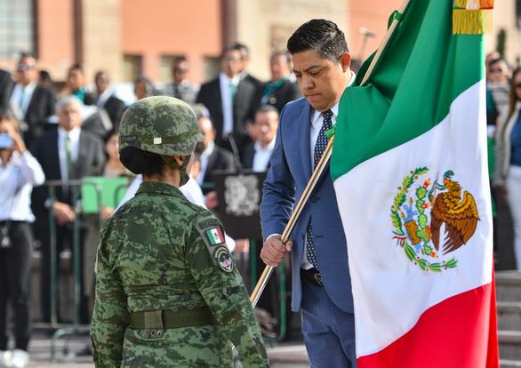 Este viernes 24 de febrero âDĂa de la Banderaâ en emotiva ceremonia de Juramento a la Bandera de alumnas y alumnos de tercer aĂąo de primaria de escuelas pertenecientes a la SEGE, encabezado por el Mandatario Estatal se realizĂł el abanderamiento a escuelas de la capital del Estado, donde enfatizĂł la importancia de âhacer una pausa en la vida diaria para que, en estas fechas cĂvicas se retome el patriotismo mexicanoâ.