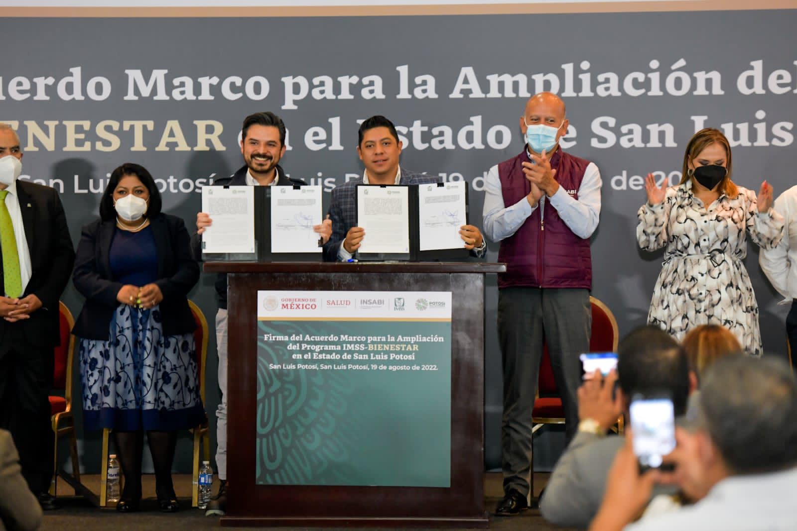 Con el compromiso de garantizar la atención médica de calidad, digna y gratuita para las y los potosinos sin que nadie se quede atrás, el Gobierno de San Luis Potosí que encabeza Ricardo Gallardo Cardona y el Gobierno de México a través del director general del Instituto de Salud para el Bienestar (Insabi), Juan Antonio Ferrer Aguilar y el director general del Instituto Mexicano del Seguro Social (IMSS), Zoé Robledo, firmaron el “Acuerdo Marco para la Ampliación del Programa IMSS-Bienestar en el Estado”.