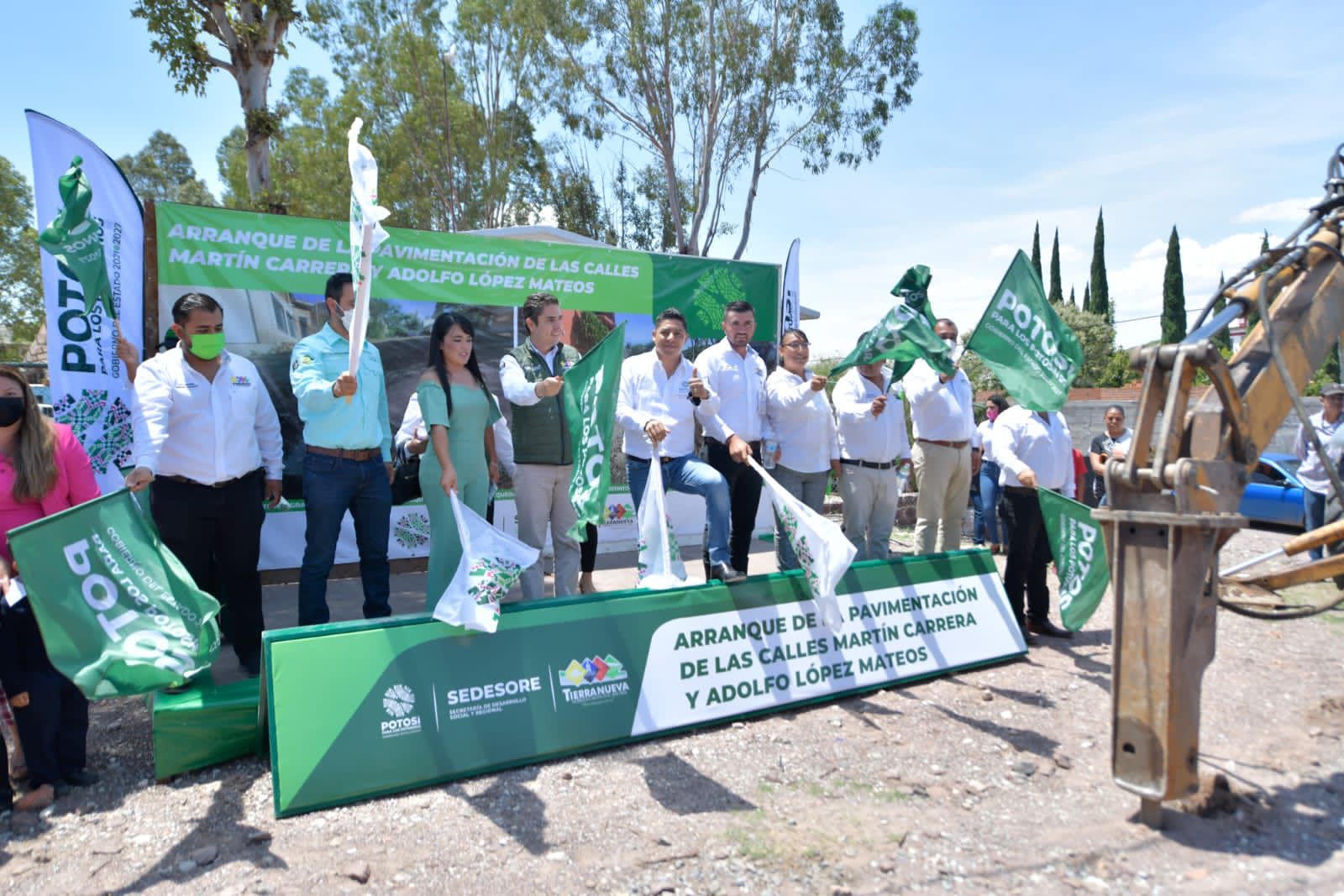 Con el arranque de las obras de pavimentación en las calles Martín Carrera y Adolfo López Mateos, en la cabecera municipal de Tierra Nueva, que obedece a una inversión de más de cinco millones de pesos, el Gobierno del cambio que encabeza Ricardo Gallardo Cardona hace justicia social a miles de habitantes, quienes durante décadas padecieron el saqueo de los gobiernos de la “maldita herencia”, mismos que les impidieron el acceso a servicios básicos como agua potable, drenaje y alumbrado público.