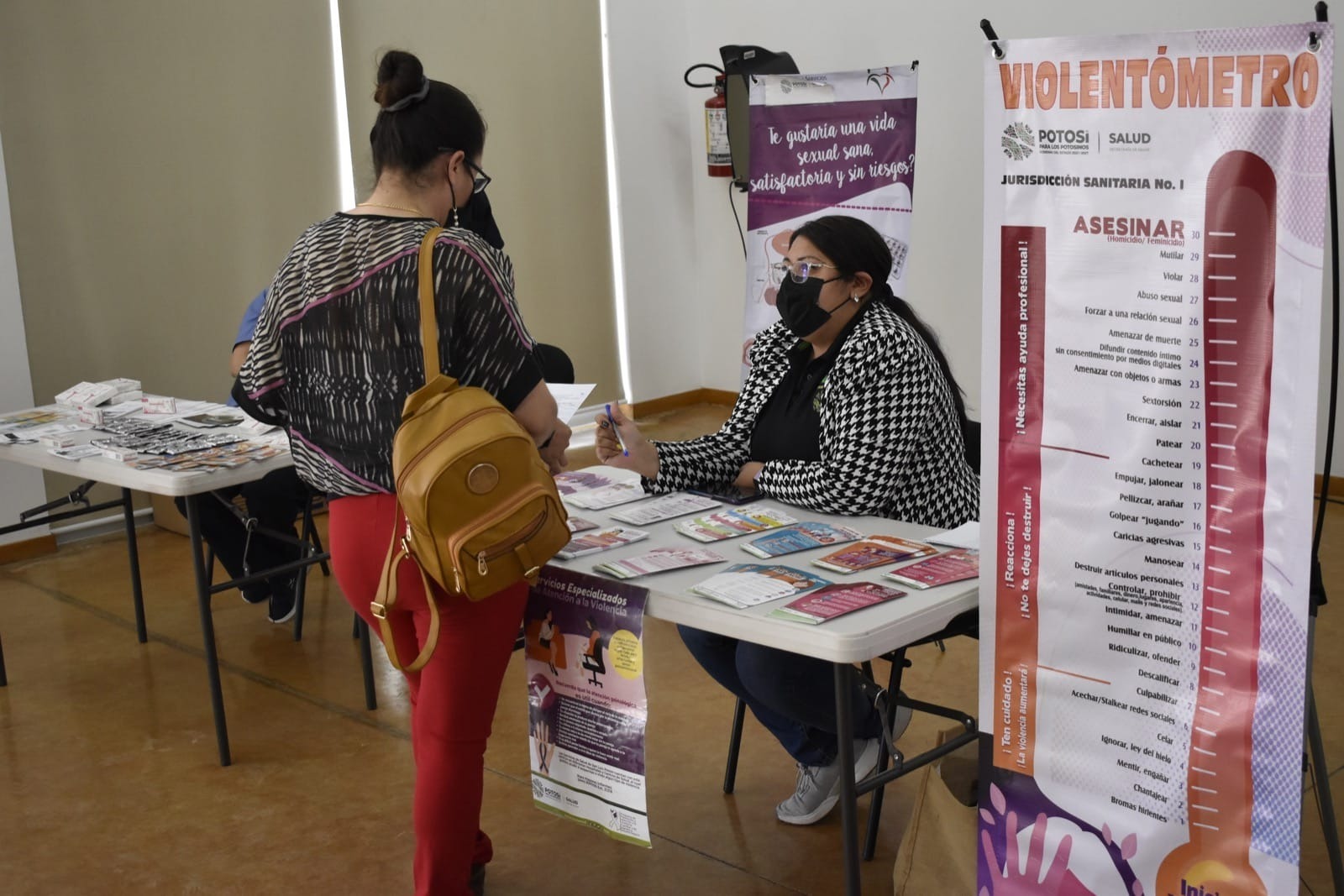 El Centro de Justicia para las Mujeres (CJM) de San Luis Potosí, gracias al convenio que firmó con los Servicios de Salud del Estado, organiza jornadas de atención a mujeres, para acercar vacunas, toma de muestras, información nutricional, asesoría sobre la violencia de género, entre otros servicios.