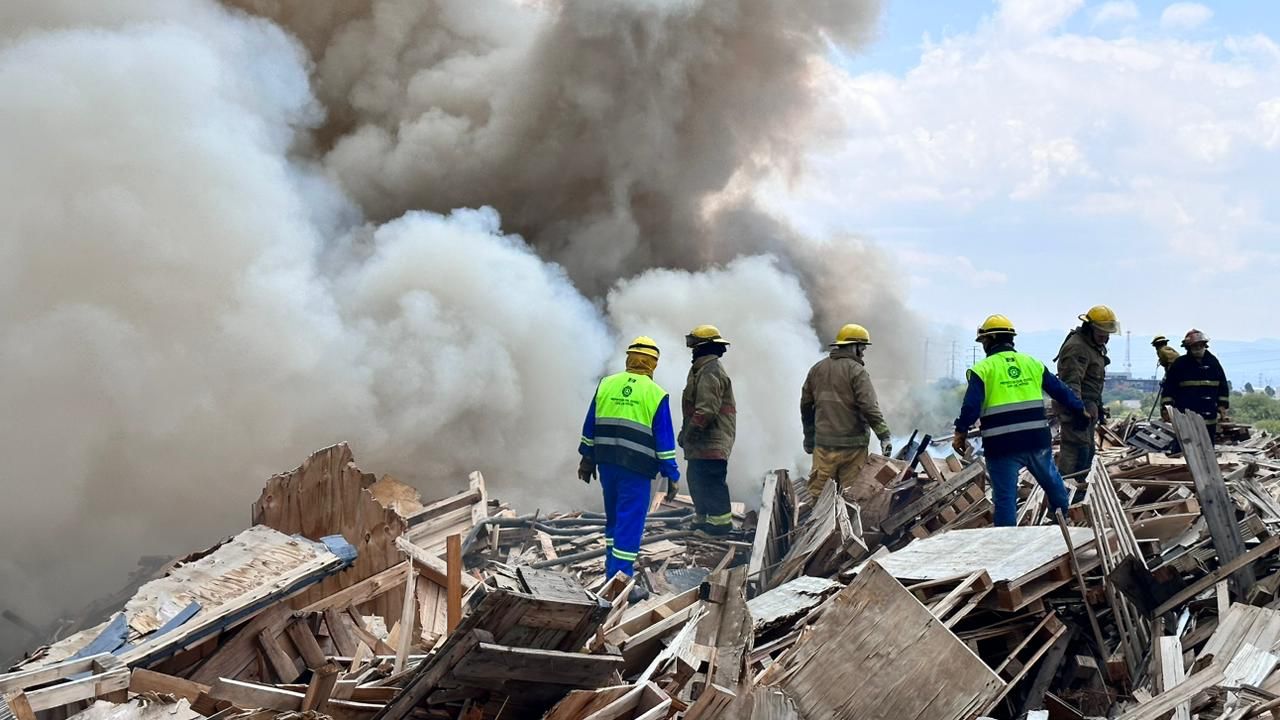 La Coordinación Estatal de Protección Civil (CEPC), brinda apoyo y atiende un incendio en una recicladora de tarimas ubicada en el Eje 140 en la zona industrial, reporte que se recibió desde la 1:00 de la madrugada, sin embargo, debido al material se ha complicado la extinción del fuego.