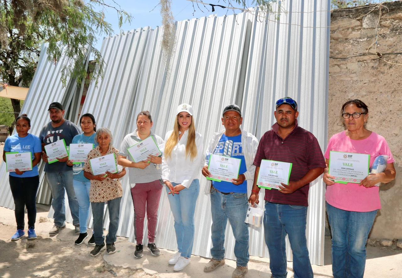 En apoyo al bienestar de las y los habitantes en situación de emergencia, de la comunidad de “El Jagüey”, en Villa Hidalgo, el Sistema Estatal para el Desarrollo Integral de la Familia (DIF), entregó insumos como láminas acanaladas y galvanizadas, mochilas y diversos insuma, así como becas alimentarias en beneficio de más de 30 familias afectadas por fuertes granizadas que se presentaron en dicha localidad.