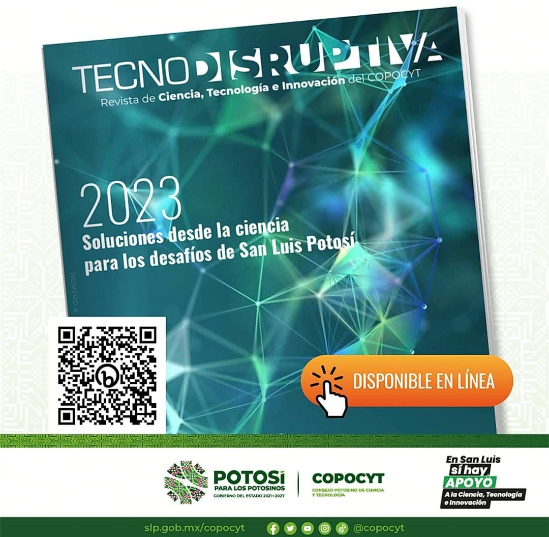 Para difundir y divulgar el quehacer científico y tecnológico en el Estado, el Consejo Potosino de Ciencia y Tecnología (Copocyt), publicó la sexta edición de la revista digital TecnoDisruptiva, con el tema “2023, soluciones desde la ciencia para los desafíos de San Luis Potosí”, donde se presenta un resumen de los principales programas y eventos de ciencia, tecnología e innovación impulsados en la primera mitad de 2023.