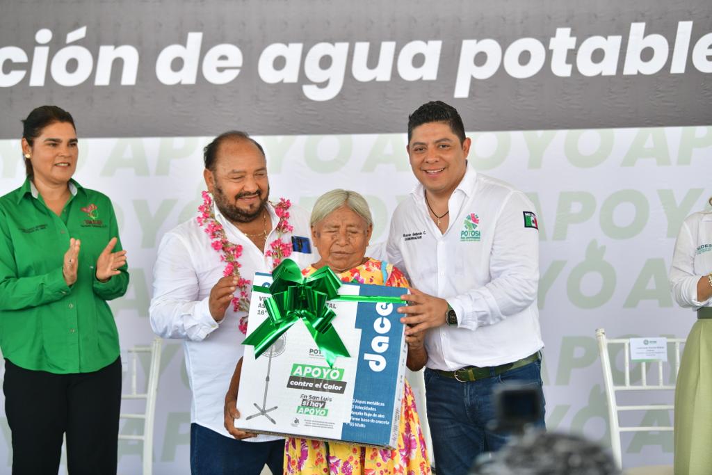 • En apoyo a la población ante las altas temperaturas superiores a los 40 grados en algunas regiones del Estado, se avanza con la entrega de ventiladores para familias potosinas