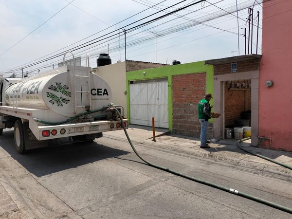 La Comisión Estatal del Agua (CEA), atiende a las familias potosinas con la distribución de agua potable gratuita a través de camiones cisterna en las colonias capitalinas al sur y oriente de la capital, afectadas por la nueva falla en El Realito y ante la inoperancia de organismos operadores de agua.