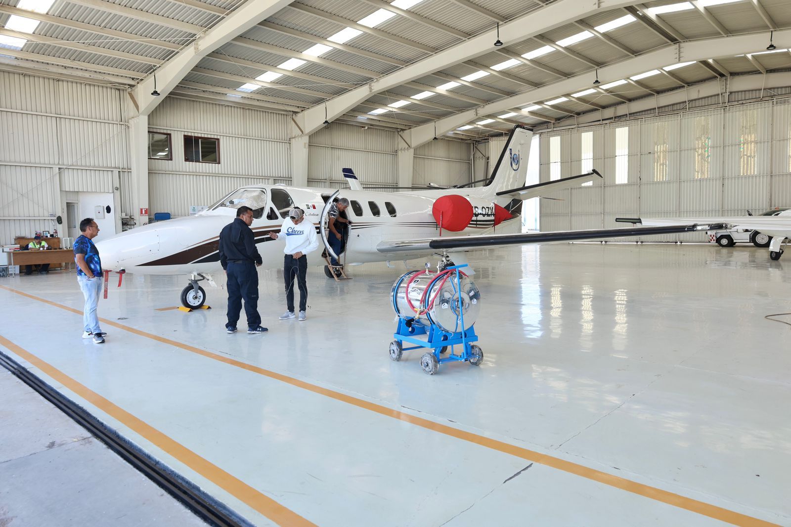 Por su parte, el subsecretario de Sedarh, Zimri Cortés Vidauri expuso que, para esta actividad y por las ráfagas de viento, fue necesario traer y equipar un avión bimotor Cessna 501, que saldría del Aeropuerto Internacional «Ponciano Arriaga» de San Luis Potosí, para cubrir polígonos que suman dos millones de hectáreas.