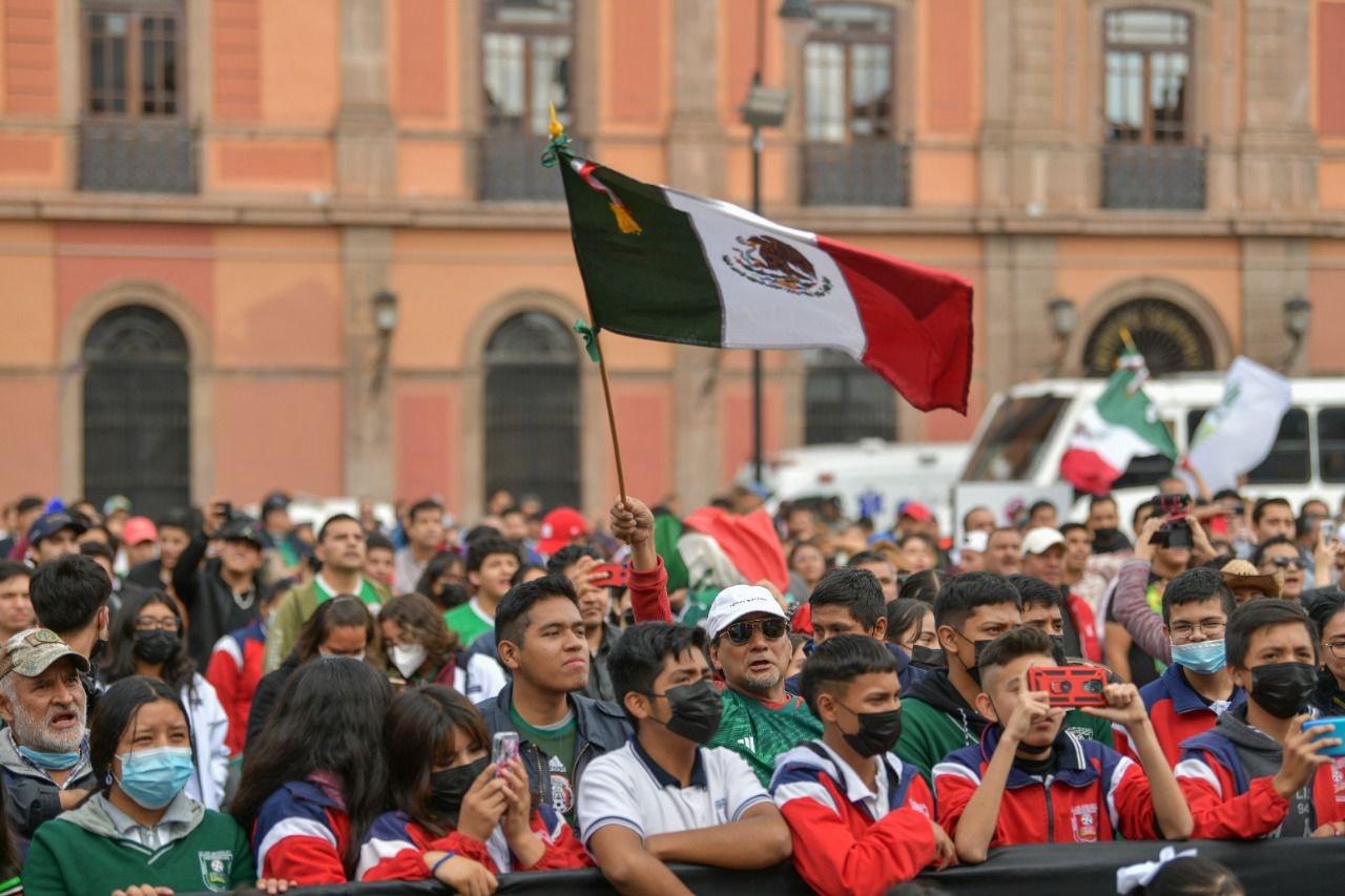Junto a cientos de aficionados y aficionadas, jóvenes estudiantes y con un ambiente de sana convivencia y júbilo, el Gobernador de San Luis Potosí Ricardo Gallardo Cardona, encabezó las actividades organizadas por el Gobierno del cambio con motivo del primer partido de la Selección de México contra Polonia en la Copa Mundial de Fútbol de la FIFA Qatar 2022, con lleno total de la plaza de los fundadores, donde se instaló una mega pantalla para la transmisión del encuentro.