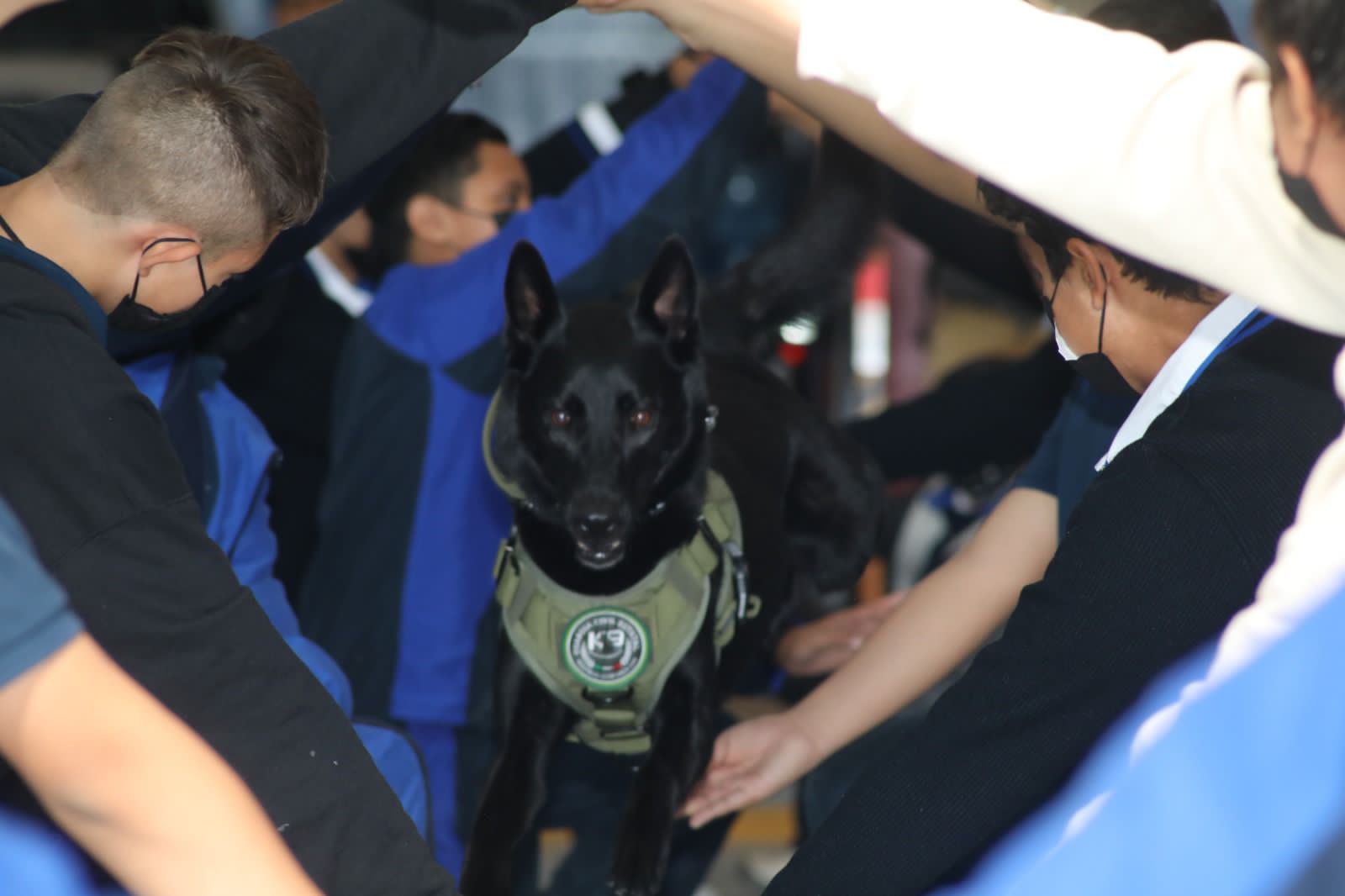 • En apoyo a la seguridad de las familias potosinas, Gonzo, Boika, Drako, Sally, Luna y Kiara son perros perfectamente entrenados para actuar ante auxilios, rescates y emergencias; además fortalecen las acciones de proximidad social