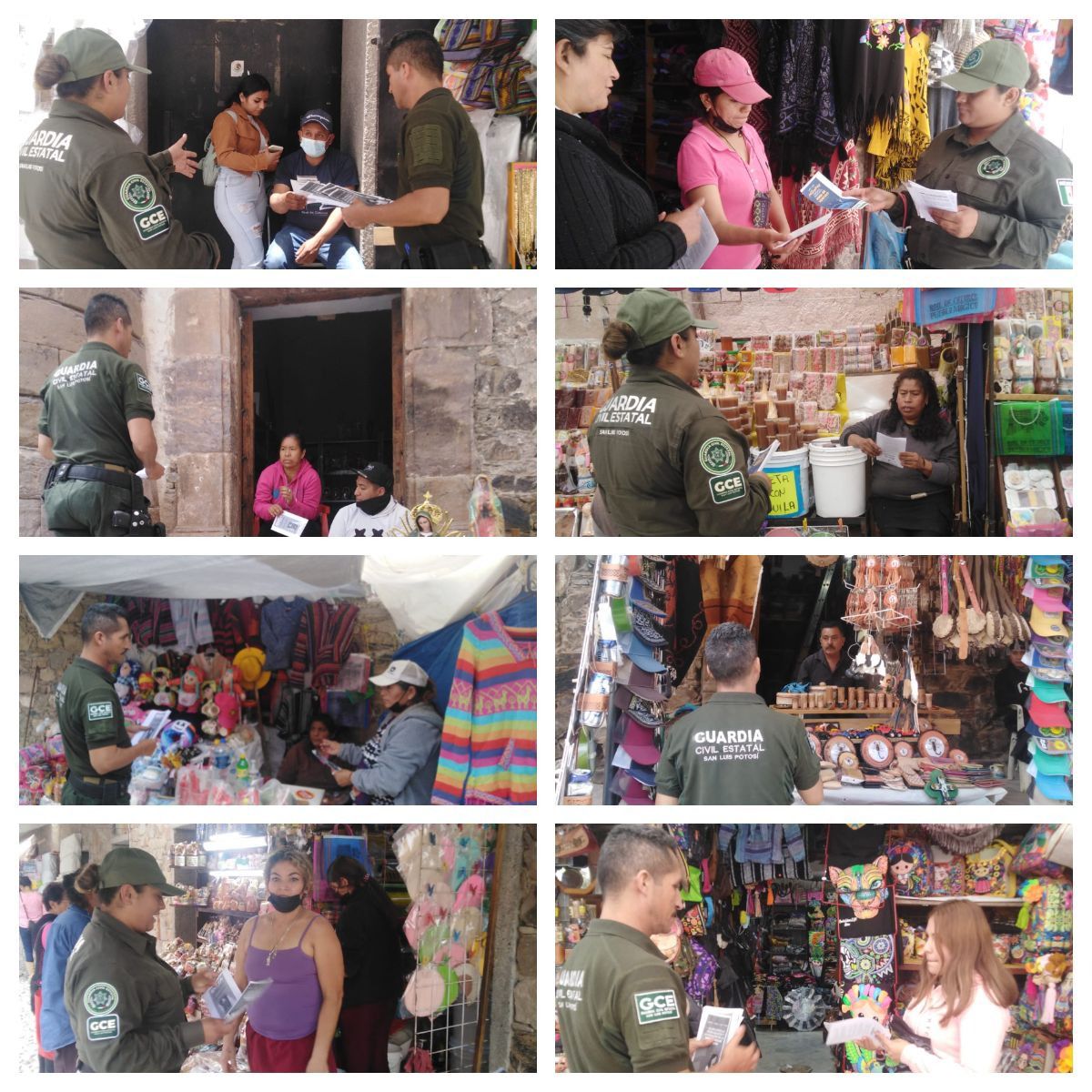 Por ello, policías de la Guardia Civil Estatal (GCE) recorrieron las calles del municipio de Real de Catorce, en donde platicaron con las y los habitantes y comerciantes del lugar, recomendándoles cómo actuar ante cualquiera de estos delitos.