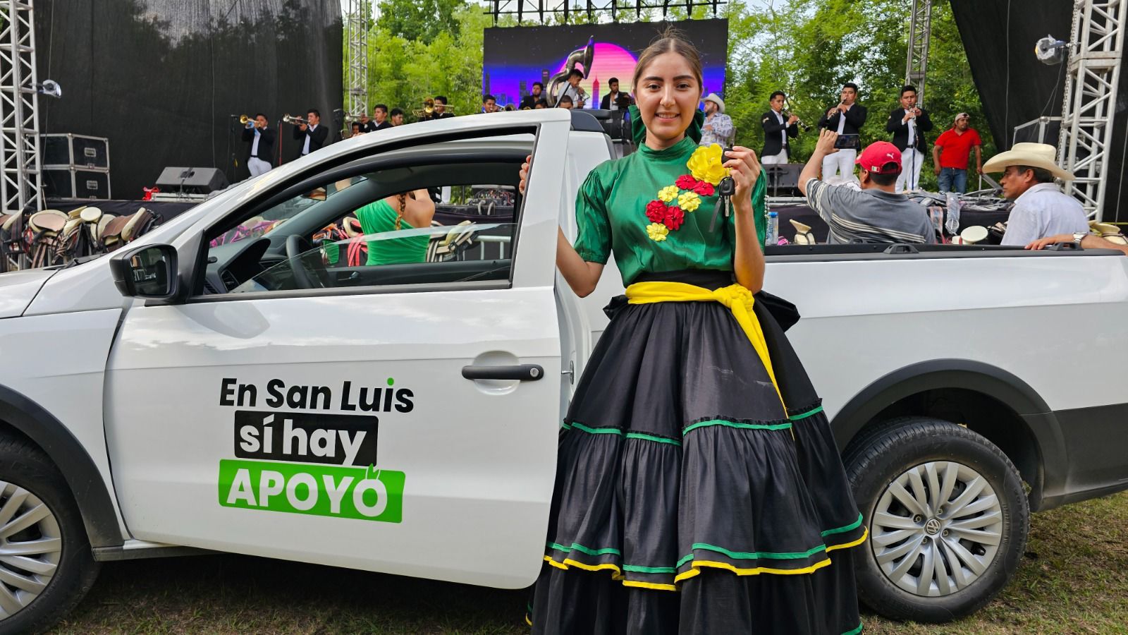 La joven Coral Medina Chávez fue la afortunada ganadora de una camioneta que donó el Gobernador de San Luis Potosí Ricardo Gallardo Cardona a los participantes del tradicional paseo a caballo en el Pueblo Mágico de Aquismón.