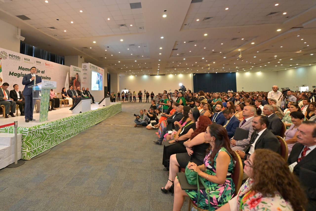 “San Luis Potosí será uno de los cinco estados más importantes del país y para lograrlo los necesitamos, le estamos apostando a la educación, porque es la verdadera palanca del cambio y del desarrollo; que ustedes tengan el reconocimiento social que merecen y una remuneración digna. Las y los maestros de San Luis Potosí son los mejores aliados de este Gobierno, para transformar al Estado”, expresó.
