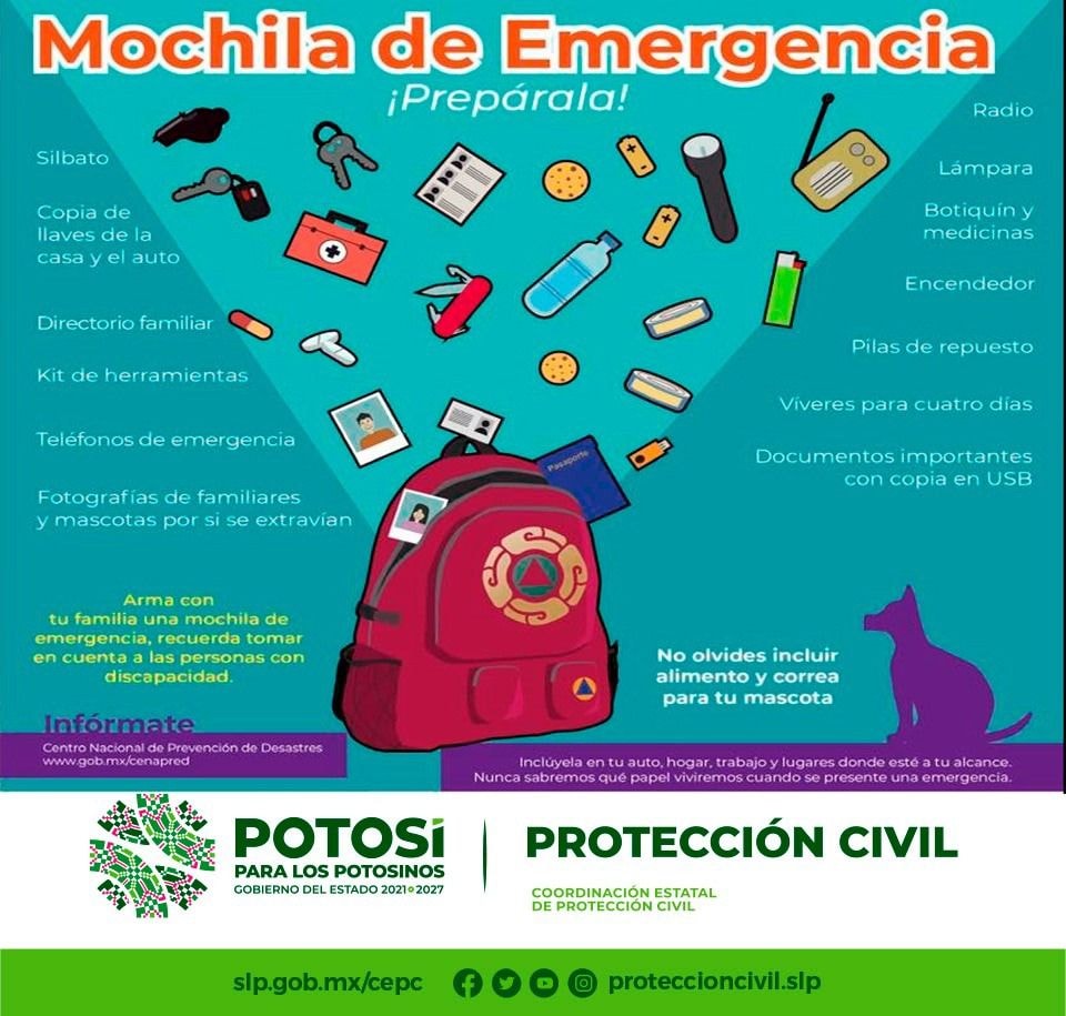 Con la finalidad de que las familias potosinas estén preparadas y sepan actuar acertadamente ante alguna contingencia por la temporada de lluvias y ciclones que ponga en riesgo su bienestar, la Coordinación Estatal de Protección Civil (CEPC) hace un llamado a poner en marcha la aplicación del Plan Familiar de Protección Civil.