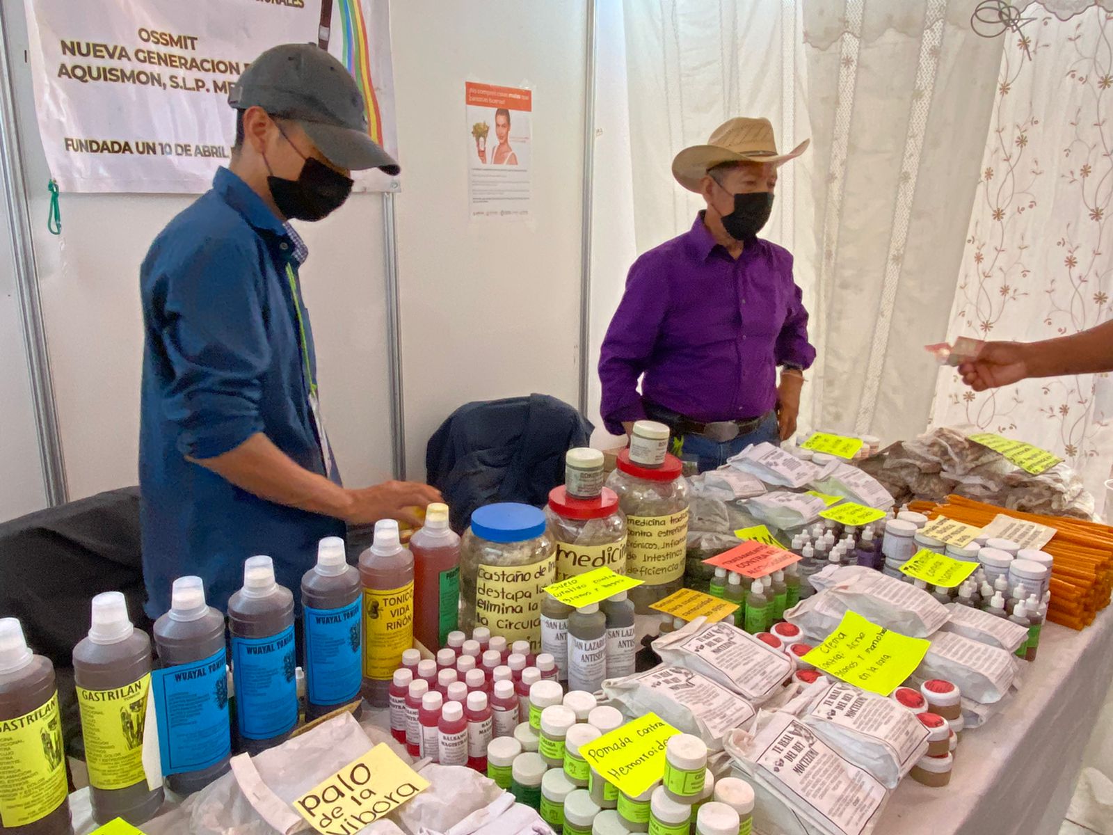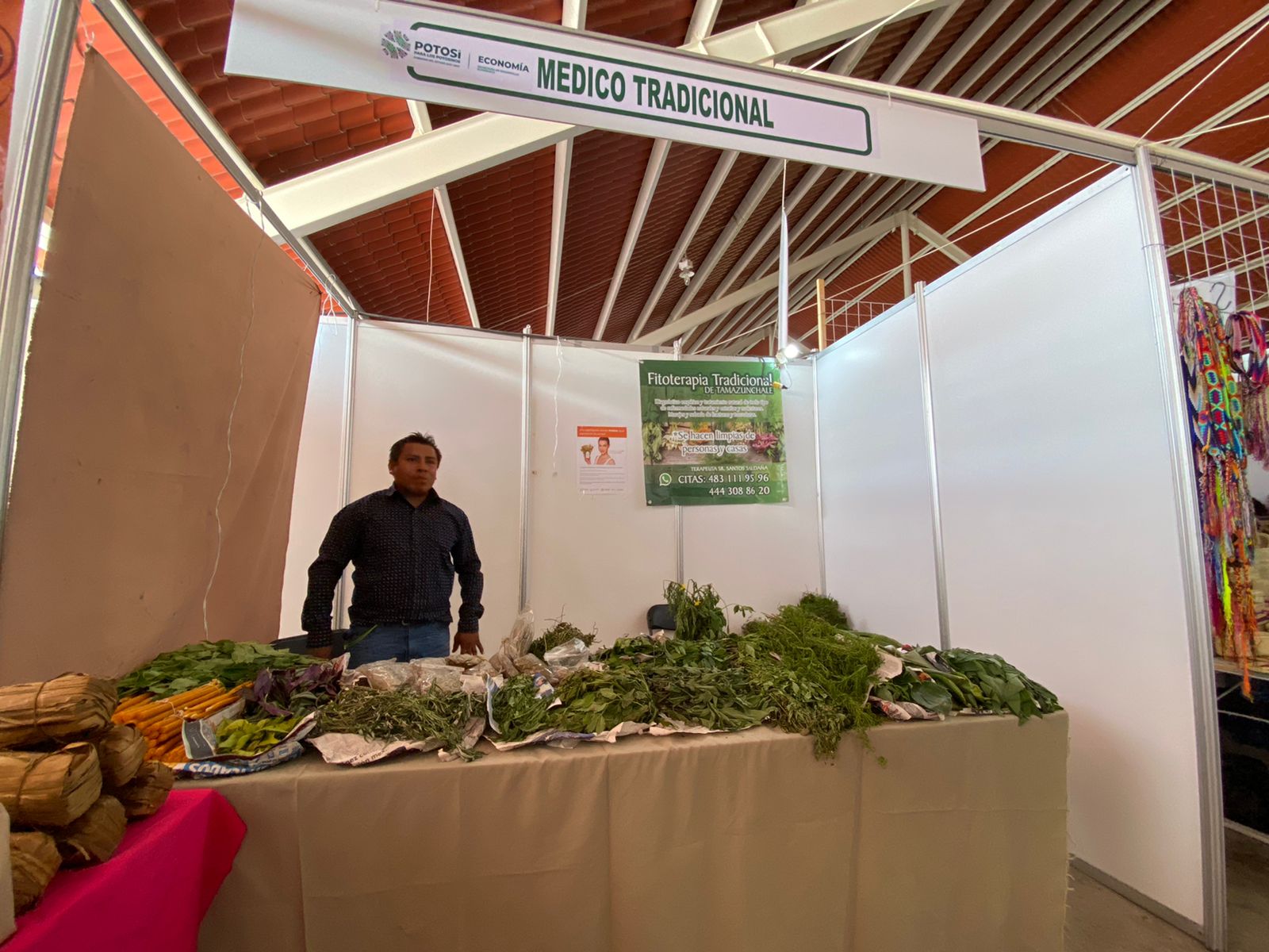 Los médicos tradicionales se pueden encontrar en el Pabellón Artesanal, que además ofrecen productos hechos por manos potosinas como aguardiente y grasa de puerco, un remedio que funciona para el dolor de muelas y cabeza; ramas de cascabel y hierba sombra de la Virgen, con el cual se prepara un té que sirve para aliviar nervios y estrés, revela Juliana Sánchez Santos, médico tradicional con 35 años de experiencia.