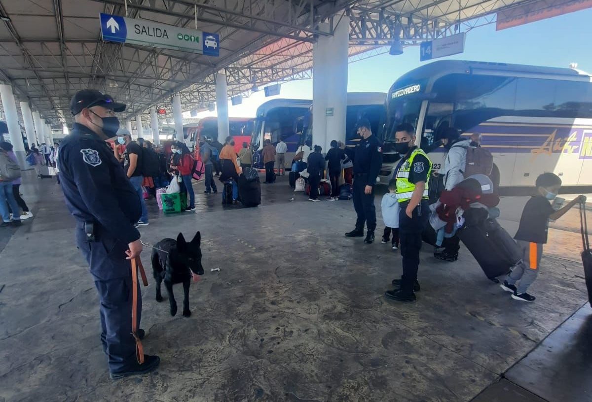 POLICÍA ESTATAL IMPLEMENTA OPERATIVO DE SEGURIDAD EN LA CENTRAL DE AUTOBUSES