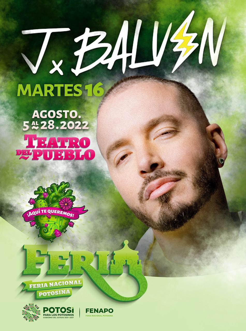 El músico urbano y cantante de reggaetón, J Balvin, presentará este martes por la noche su espectáculo internacional en el Teatro del Pueblo de la Feria Nacional Potosina 2022 (Fenapo), siendo uno de los artistas más queridos y esperados por miles de seguidores que abarrotarán el escenario del magno evento ferial.