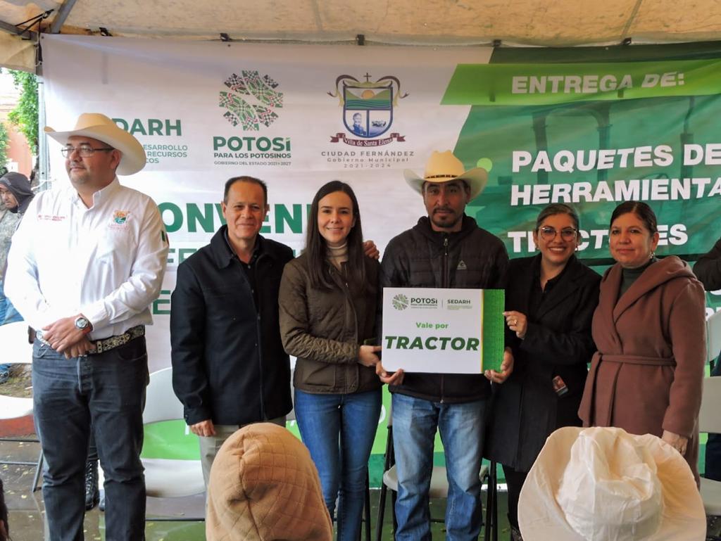 San Luis Potosí sigue despegando hacia el fortalecimiento del campo, con la entrega de más de 6.3 millones de pesos en implementos, herramientas y tractores que entregó la Secretaría de Desarrollo Agropecuario y Recursos Hidráulicos (Sedarh), a productores de Rioverde, Ciudad Fernández y Lagunillas.