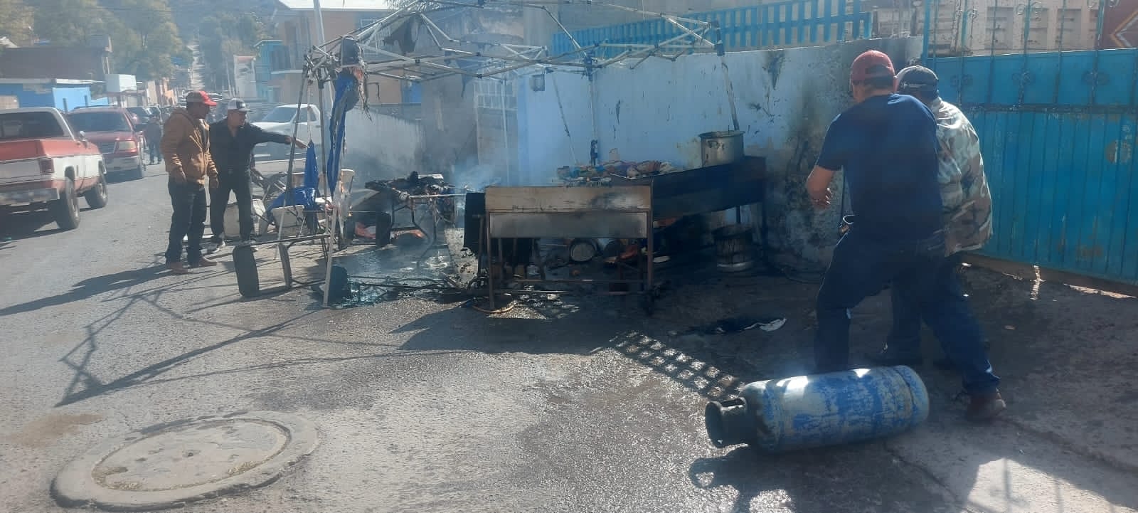 Precisó que la causa del incidente se debió a que una corriente de aire derribó un tanque de gas de 20 kilos que abastecía a los comales de un puesto ambulante de gorditas, y al momento de caer se rompió el regulador, lo que derivó en un flamazo.
