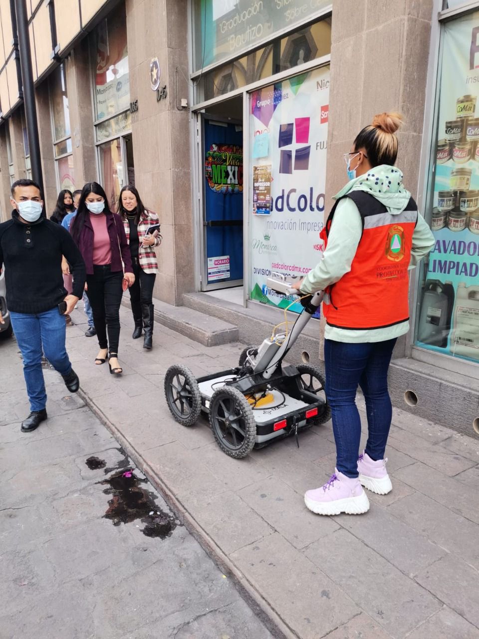 • Personal lleva a cabo una inspección con un radar para determinar daños de inmuebles en SLP, tras el sismo de este 19 de septiembre