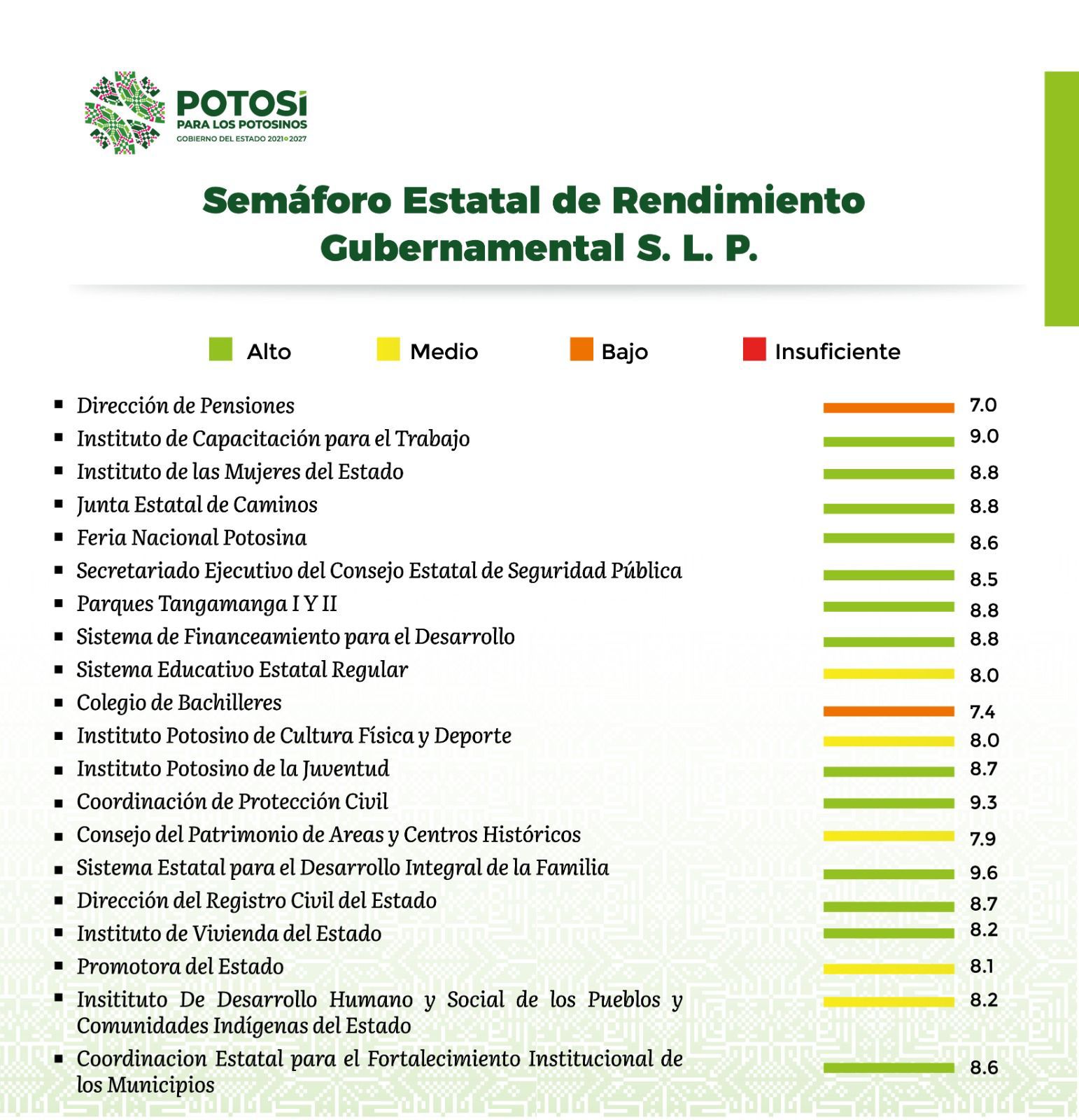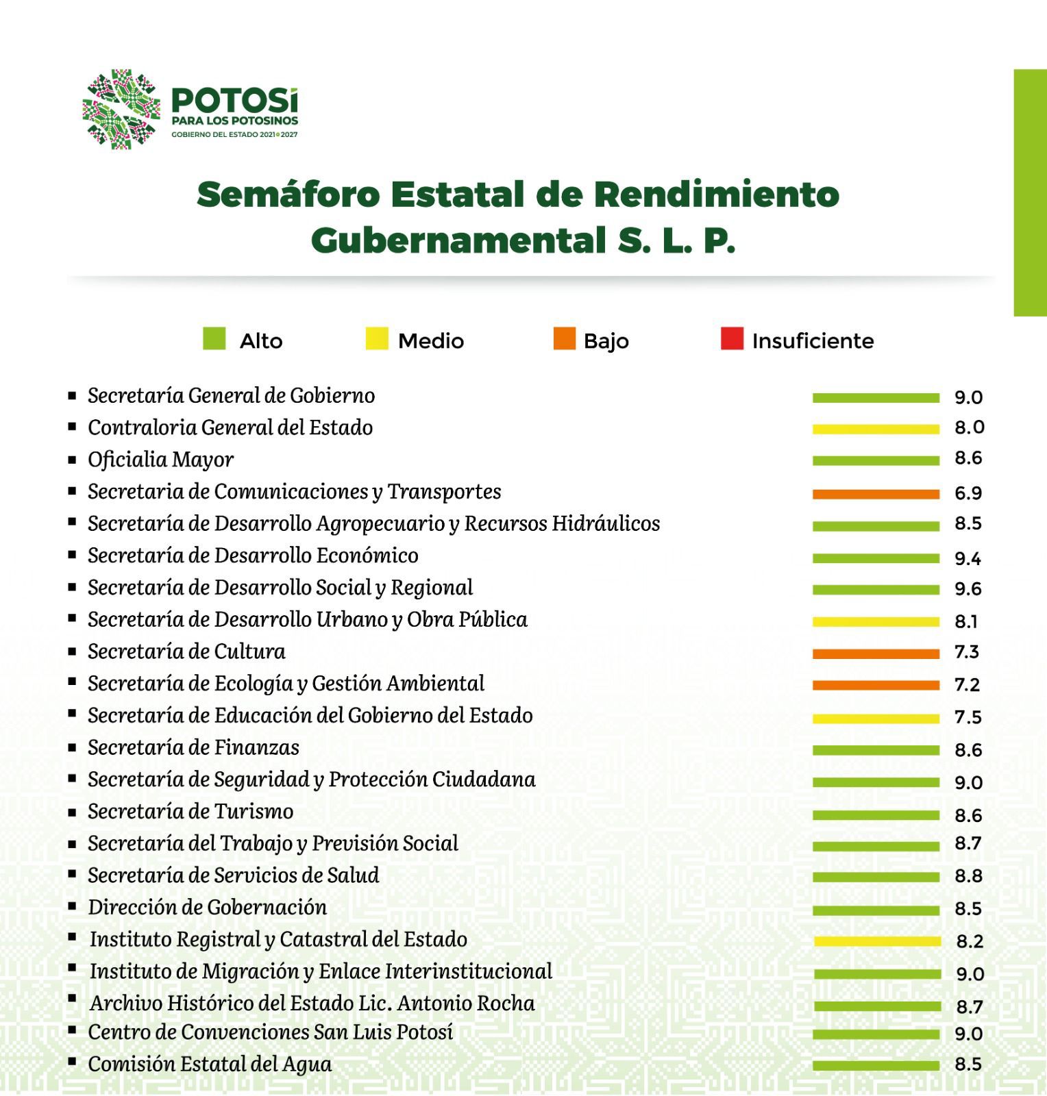 PUBLICA GOBERNADOR RICARDO GALLARDO NUEVO SEMÁFORO DE RENDIMIENTO ESTATAL