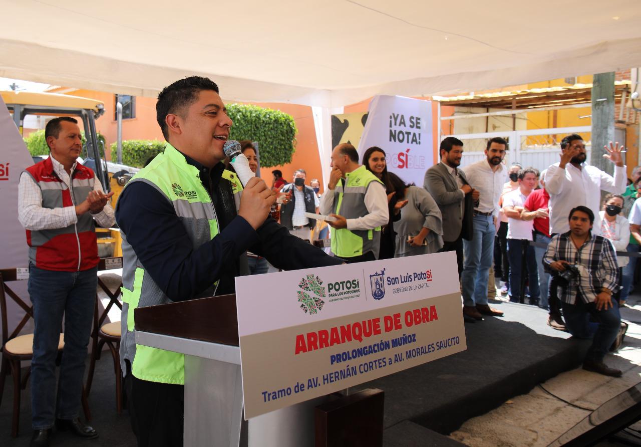Durante el arranque de la obra en prolongación Muñoz, donde el Gobernador de San Luis Potosí, Ricardo Gallardo Cardona, acompañó al alcalde de la ciudad, Enrique Galindo Ceballos, el Mandatario Estatal reafirmó que el Gobierno del cambio continuará impulsando proyectos de infraestructura que beneficien a las y los capitalinos.